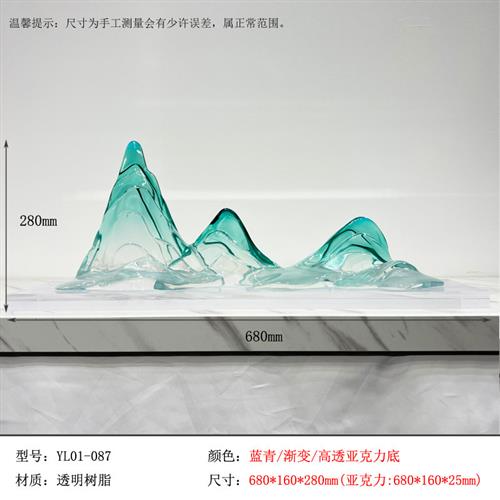 透明树脂假山雕塑客厅玄关装饰书房新中式样板房会所桌面招财石头