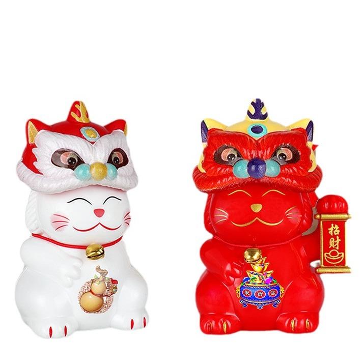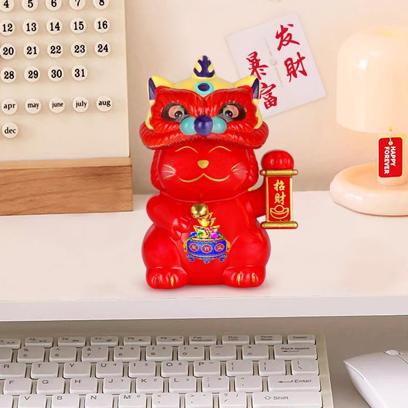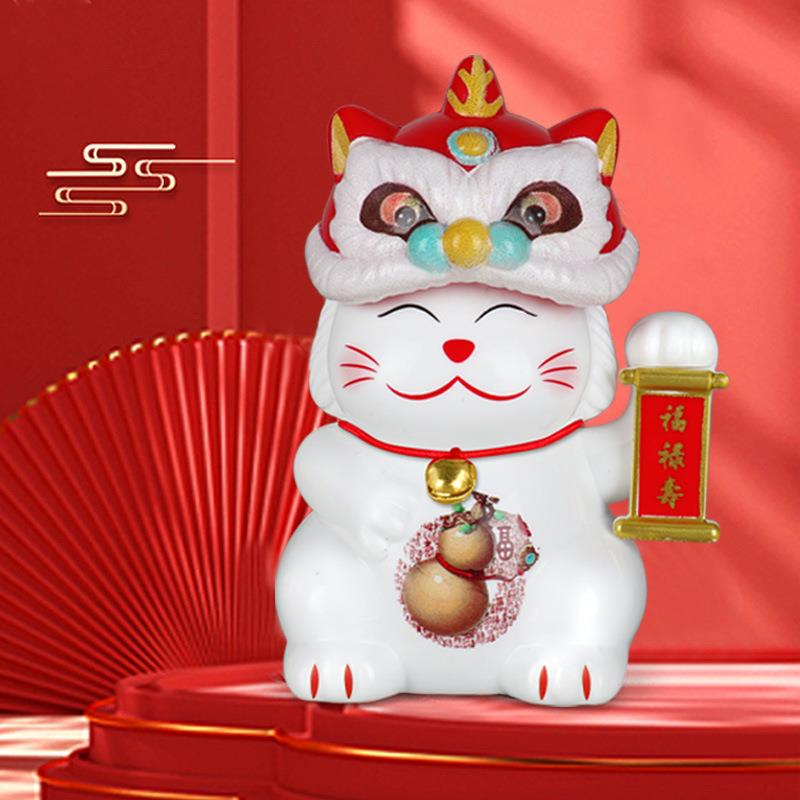 太阳能舞狮猫吉祥中国风国潮狮子家居汽车摆件年会礼品国潮风