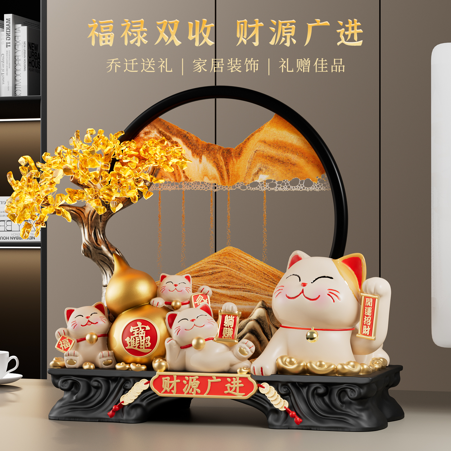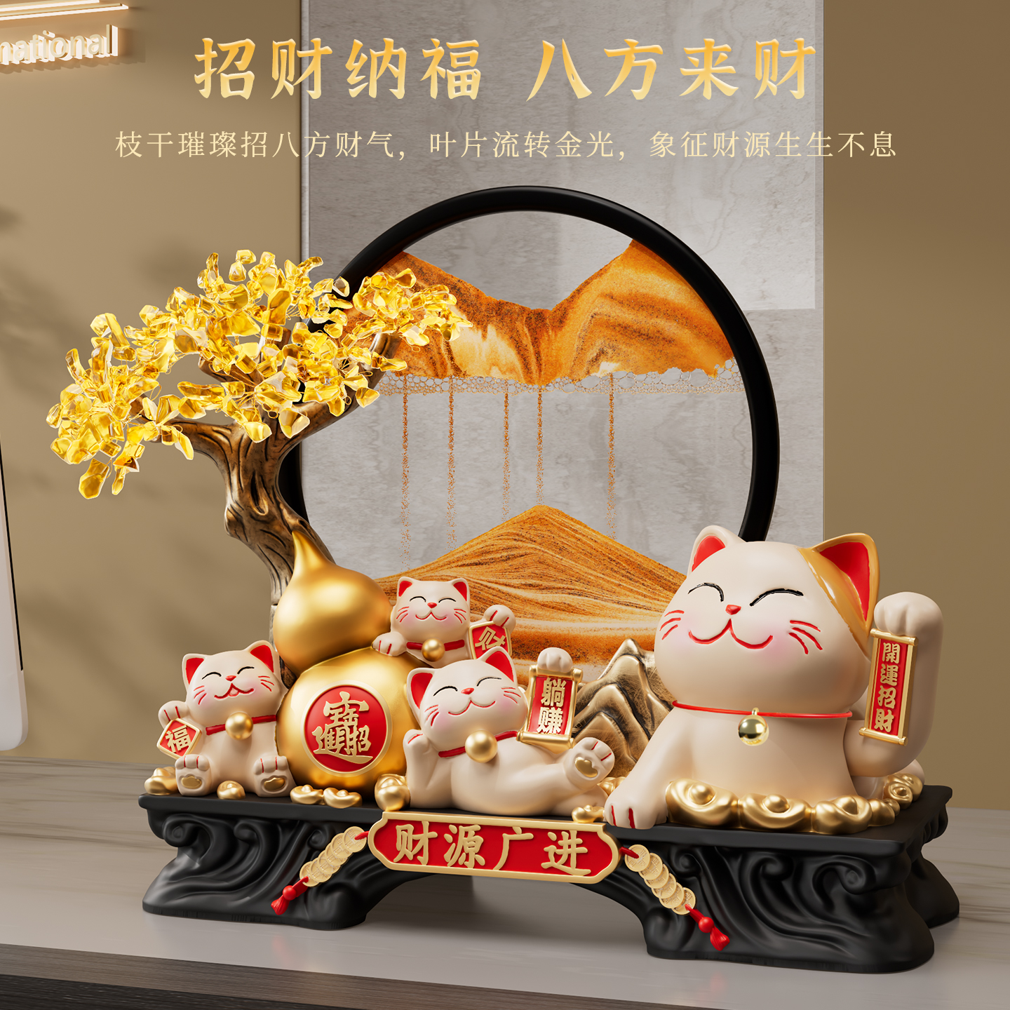 招财进宝发财树招财猫摆件开业礼物前台自动招手生意兴隆2025新款