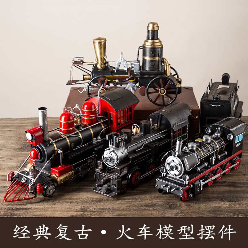 创意复古铁皮蒸汽机火车头模型美式家居摆件酒柜装饰玄关家居饰品