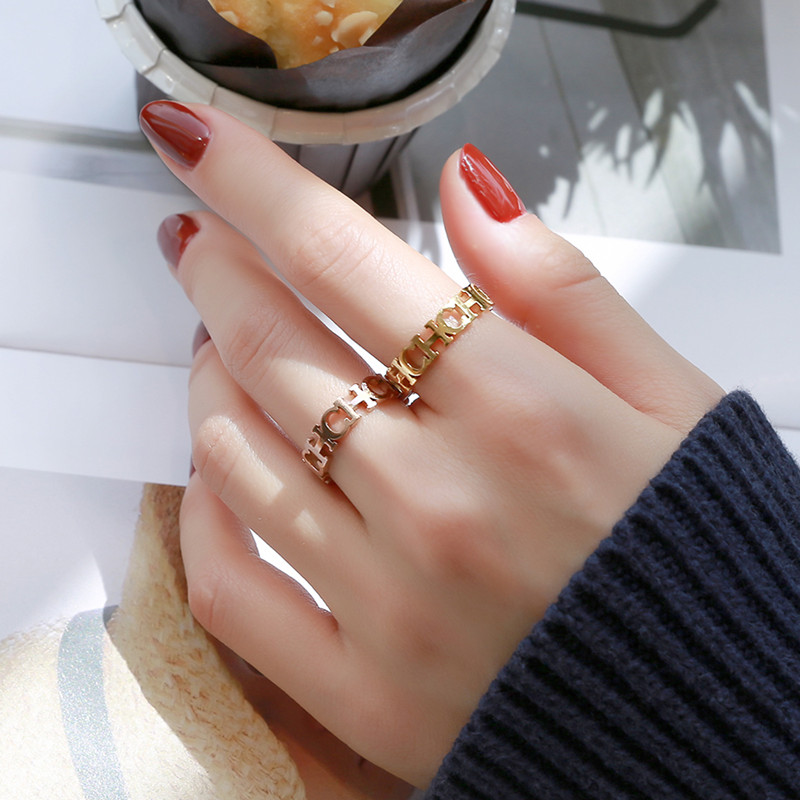 可调大小新款韩版钛钢镂空开口戒指女潮时尚网红抖音食指环不掉色