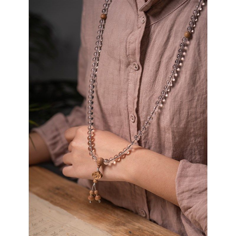 天然白色水晶108颗8mm圆珠项链p202老山檀香文玩配饰佛珠念珠男女