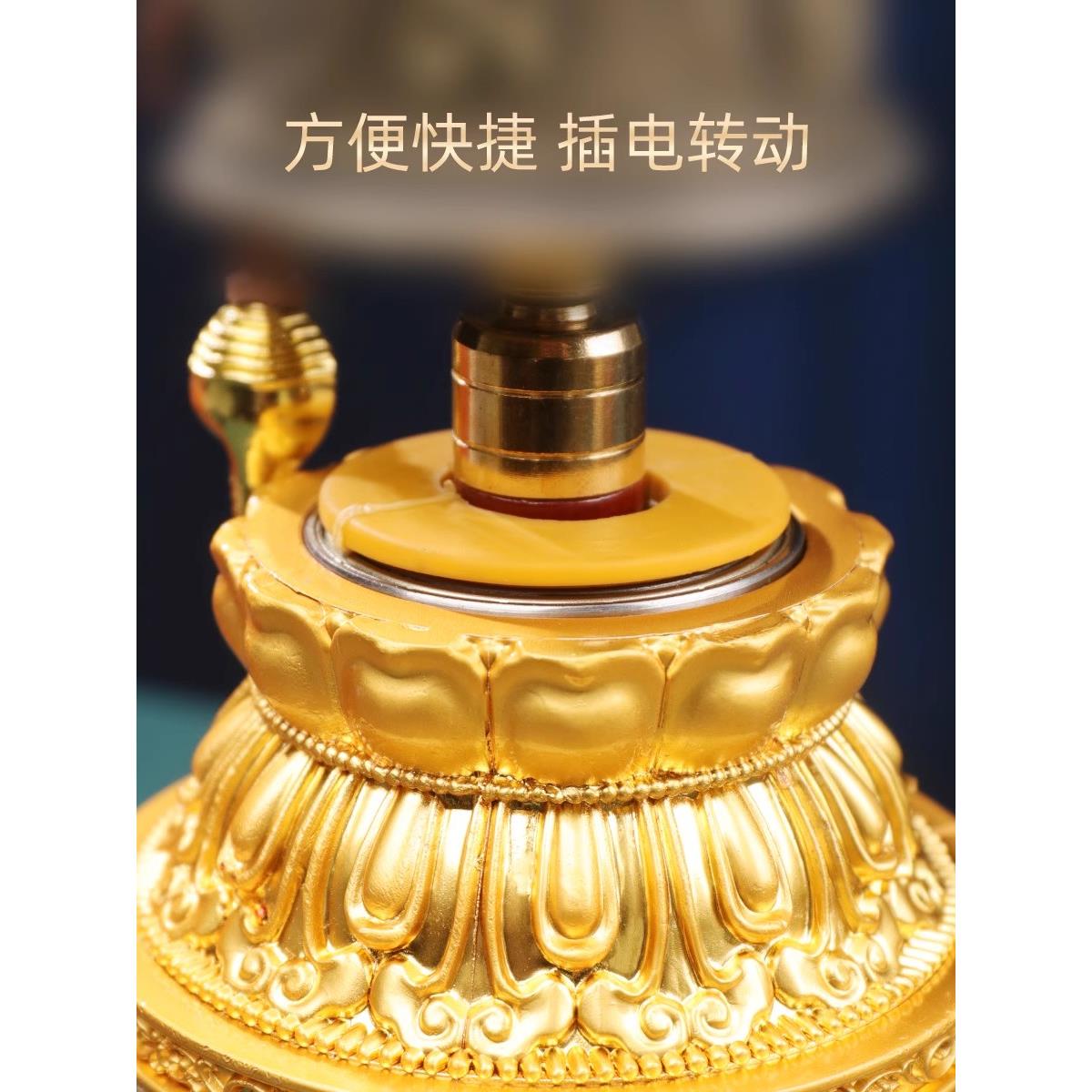 八吉祥藏式工艺品雕花电动手摇底座转轮桶合金桌面民族风装饰摆件