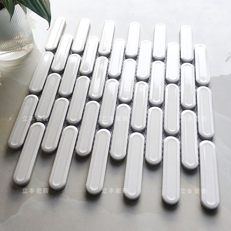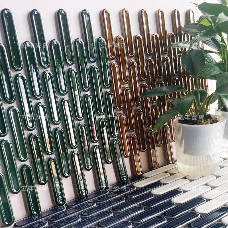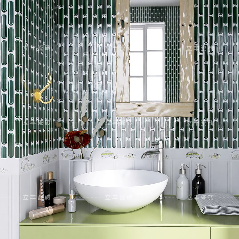 墨绿色窑变陶瓷小长条圆形马赛克瓷砖餐厅咖啡店卫生间背景墙装饰