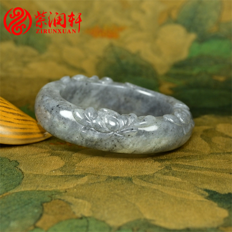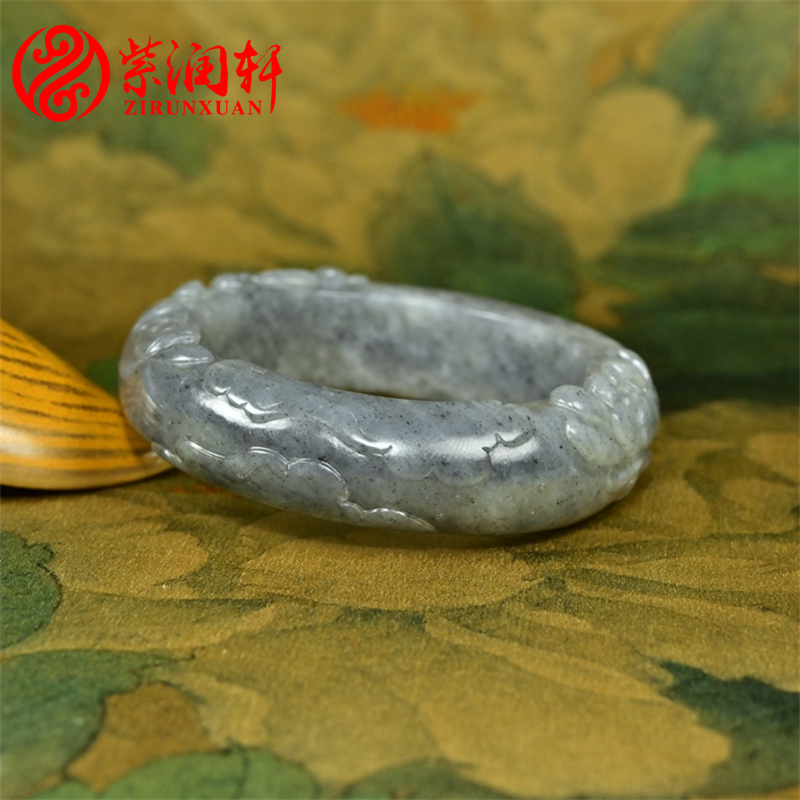 紫润轩新疆和田玉青花籽料手镯苏工莲花57 5MM荷花一品清莲收藏级