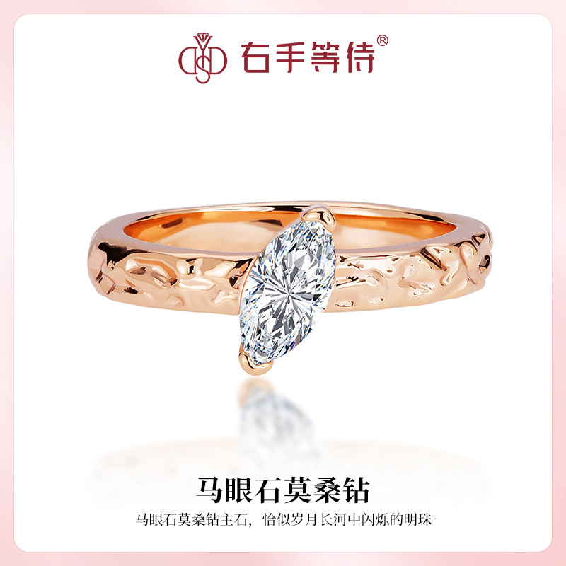右手等待流金岁月莫桑石复古轻奢玫瑰金光臂闭口圈50分钻戒指女