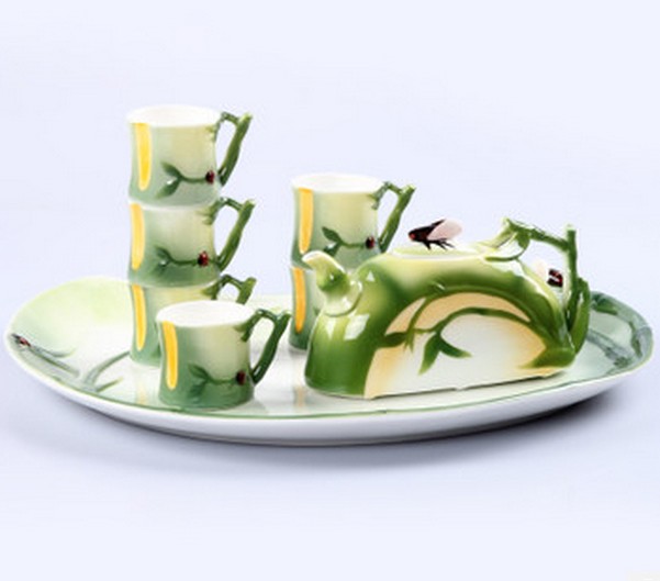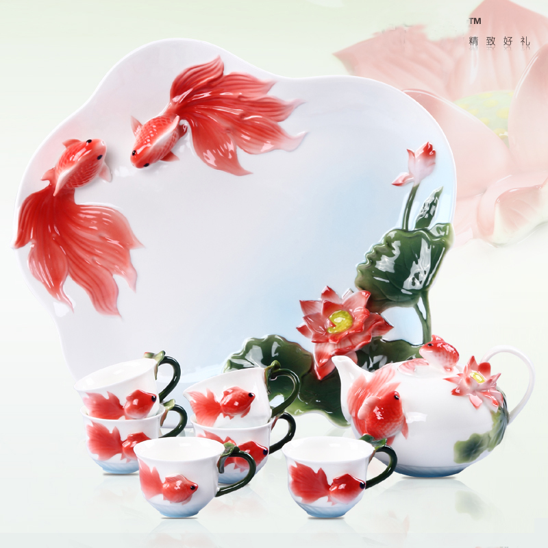 珐琅彩法兰骨质瓷茶具套装创意手绘摆件客厅茶几家居工艺装饰用品
