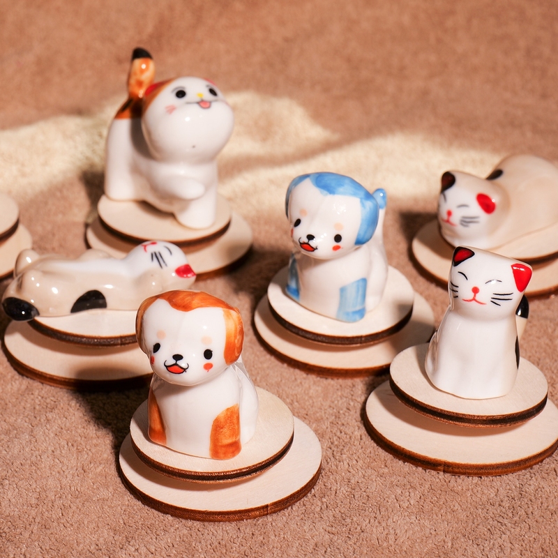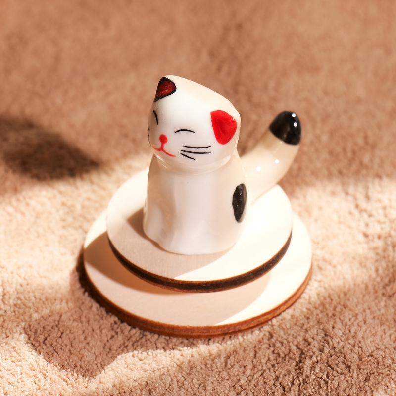 国潮发财猫旋转小摆件陶瓷小海狸露比可爱动物loopy桌面手工送礼
