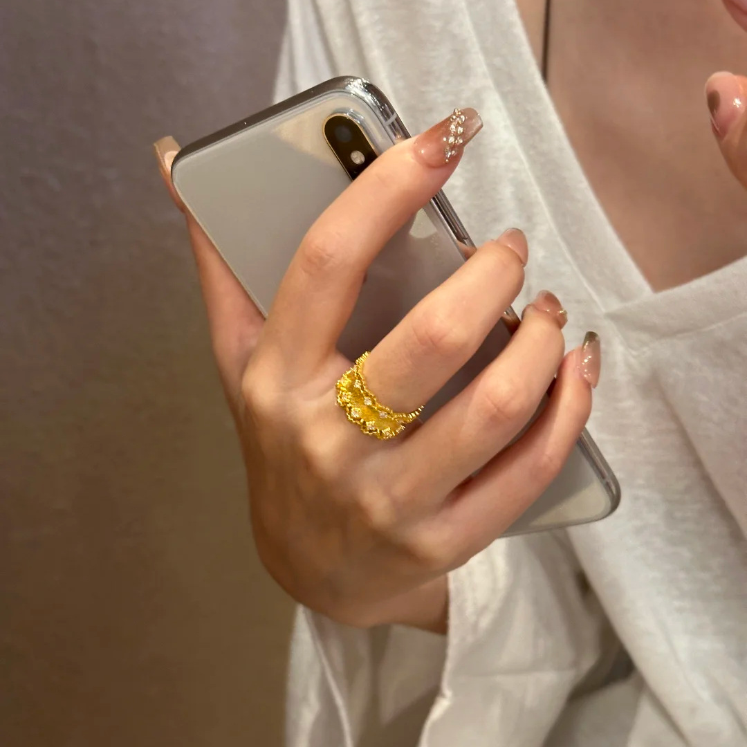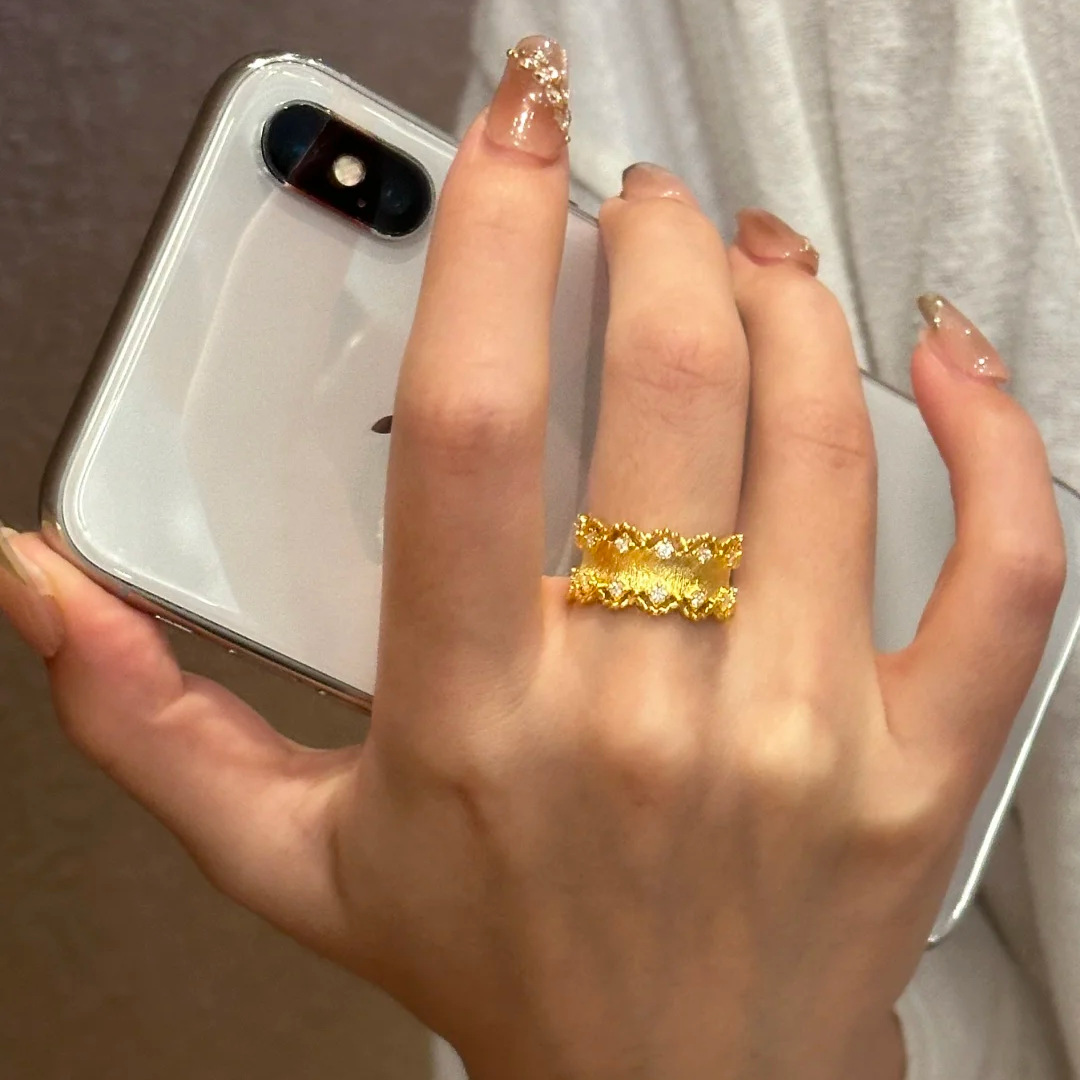 钻石之乡实验室人工培育钻意大利布契风织纹雕金蕾丝花边戒指时尚