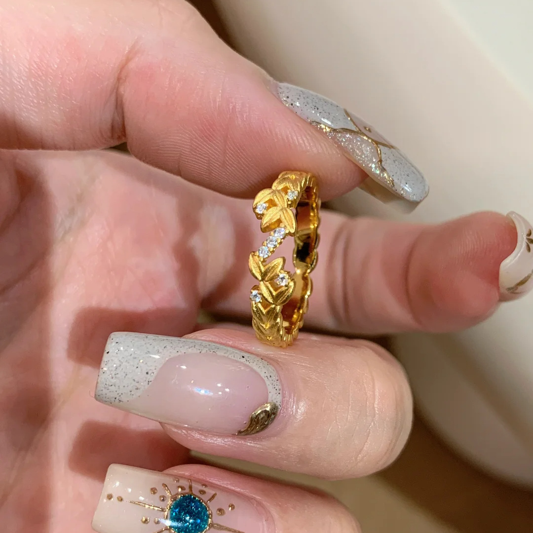 钻石之乡实验室人工培育钻vintage中古镶钻月桂女神戒指简约气质
