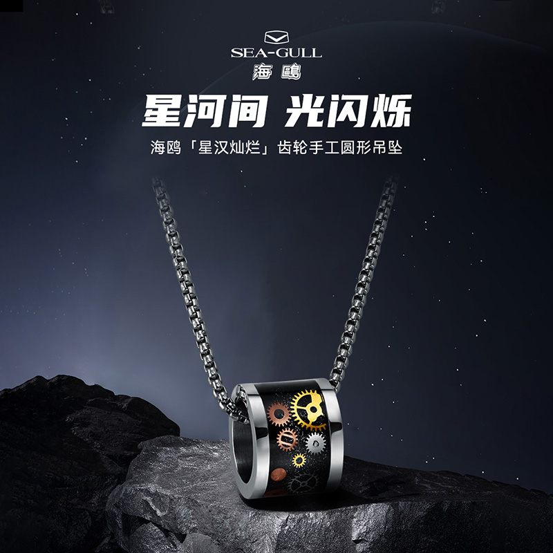 海鸥星汉灿烂齿轮手工圆环吊坠小众设计男女款项链