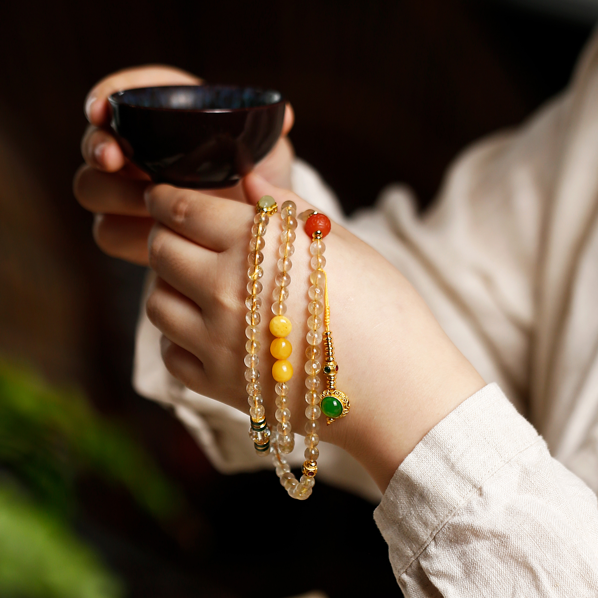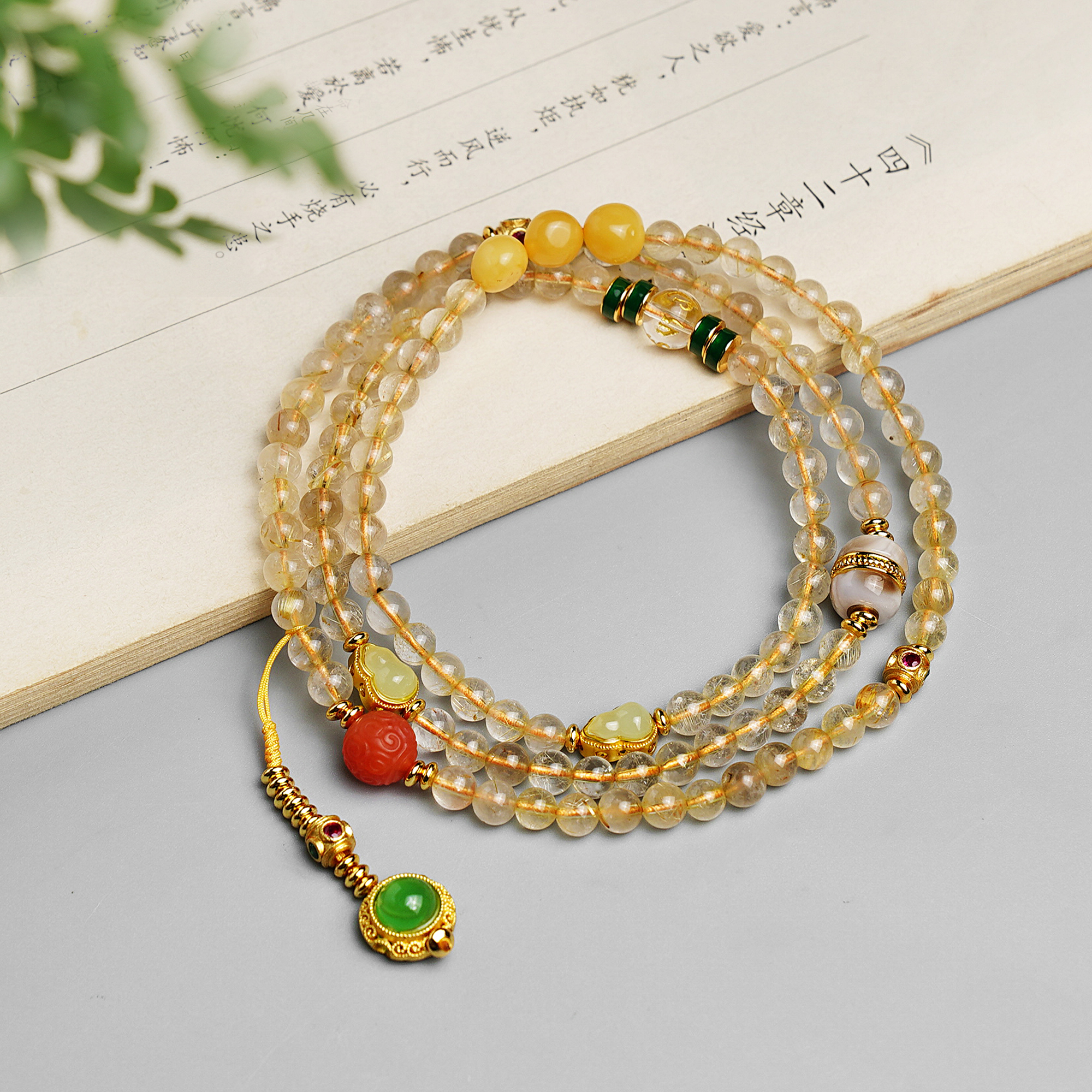 天然黄发晶项链水晶原石蜜蜡南红玛瑙配饰串珠手串手链女七夕礼物