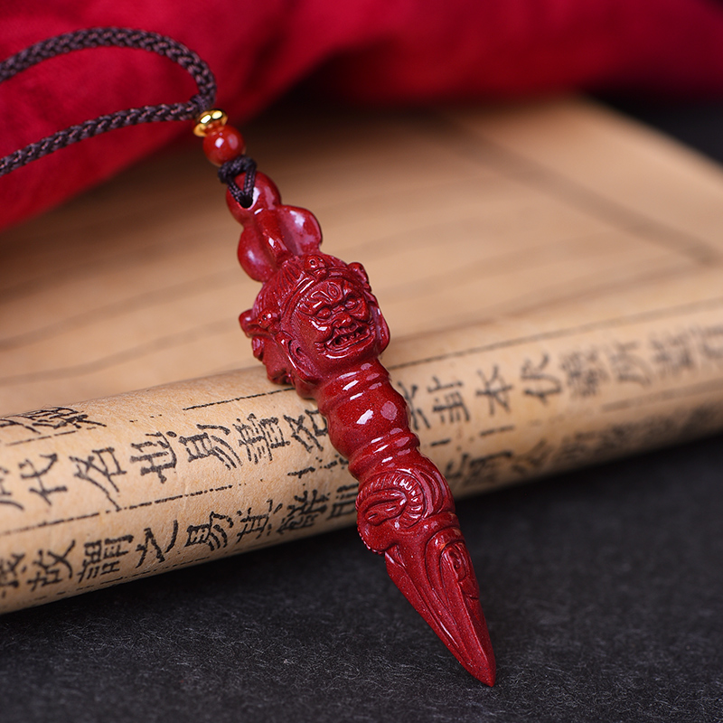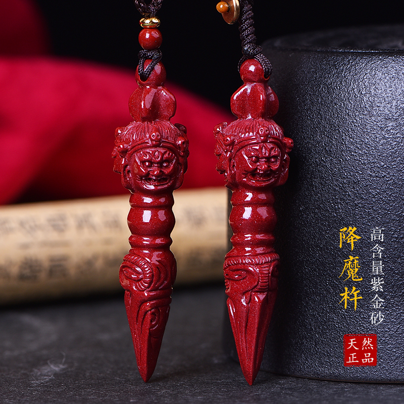 天然正品原矿朱砂吊坠三面普巴金刚降魔杵法器挂件女紫金砂项链男