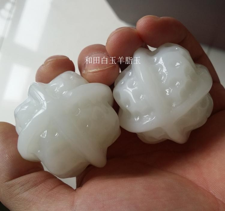 正品新疆籽料和田玉白玉核桃手把件玉核桃健身球羊脂白玉手玩件