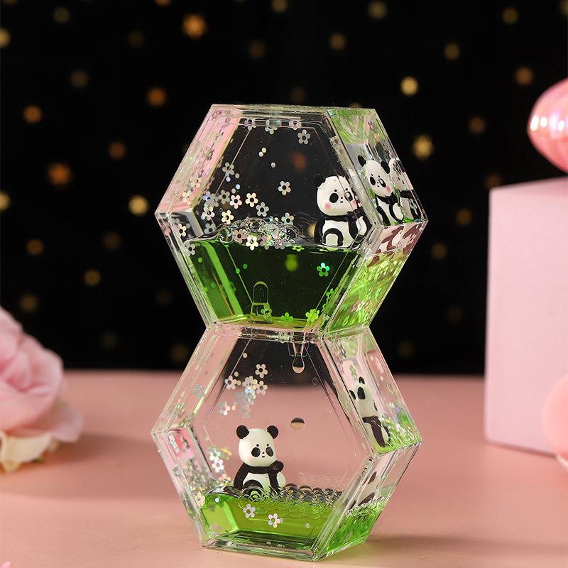 创意摆件熊猫减压油漏沙漏情绪稳定桌面油滴计时器儿童礼物玩具