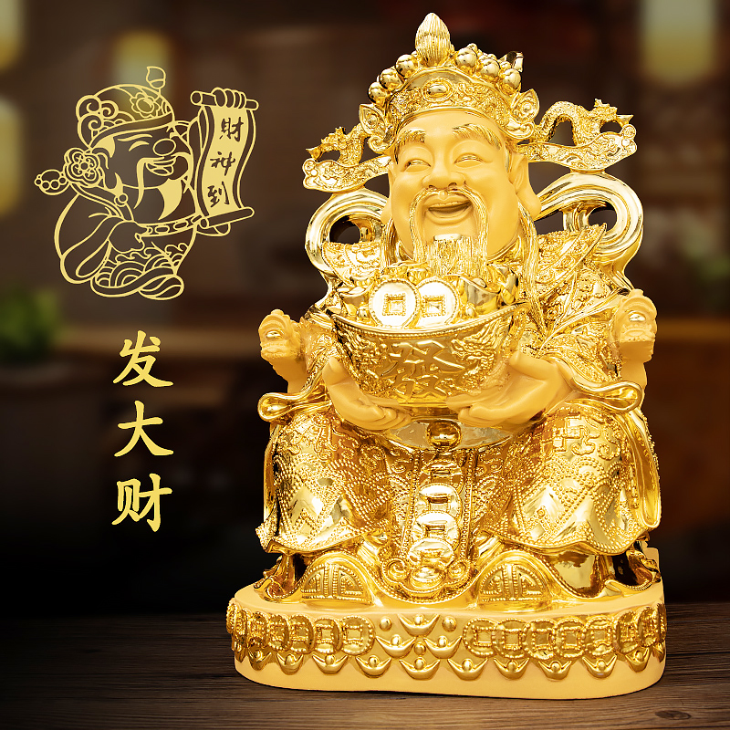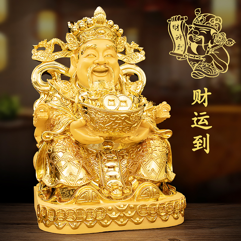 财神爷摆件家用金色招财比干神像店铺工艺礼品办公室供奉文财神到