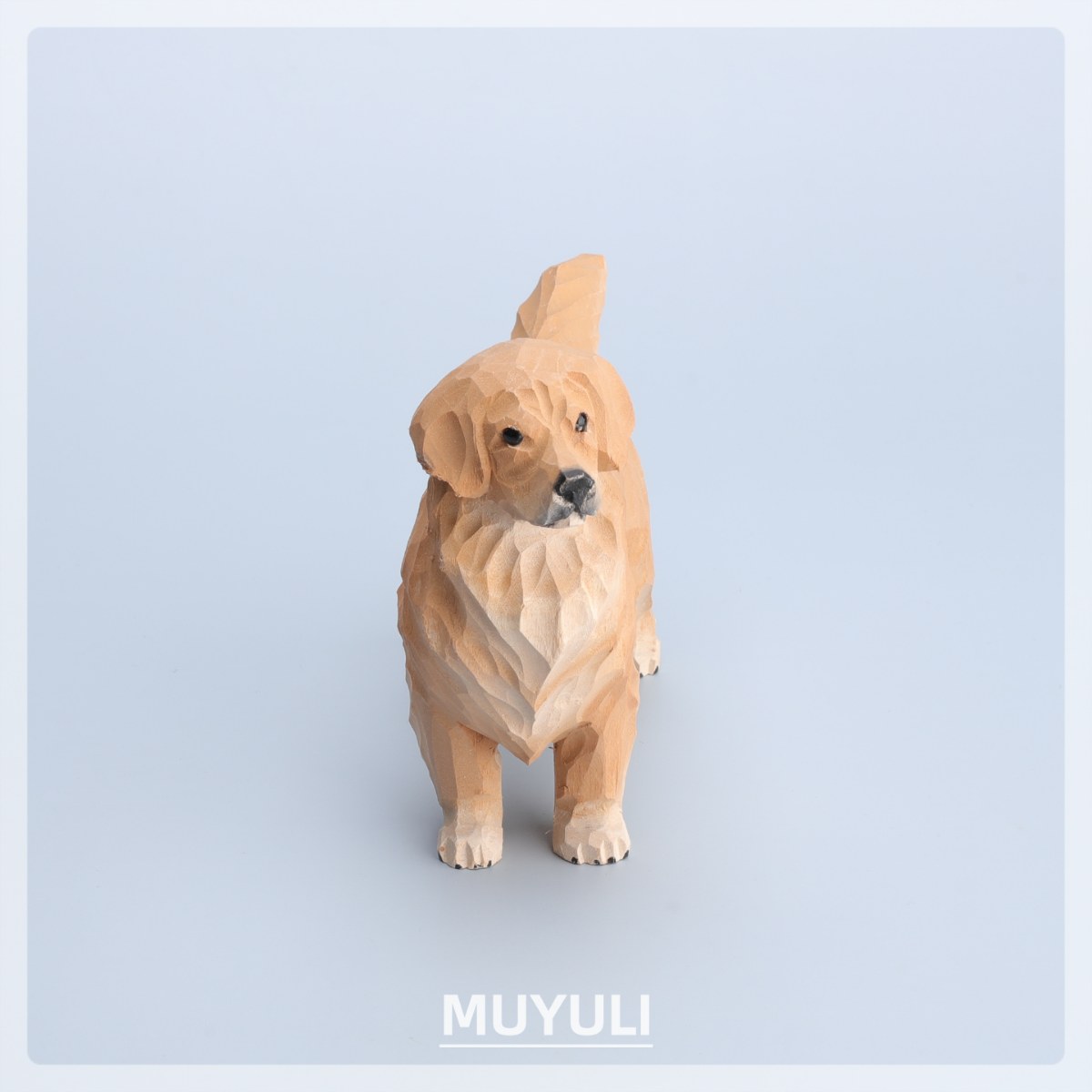 手工木雕金毛丨生肖小狗狗办公室工位电脑桌面摆件创意装饰礼物女
