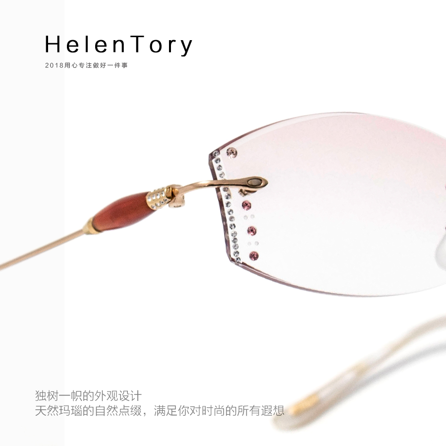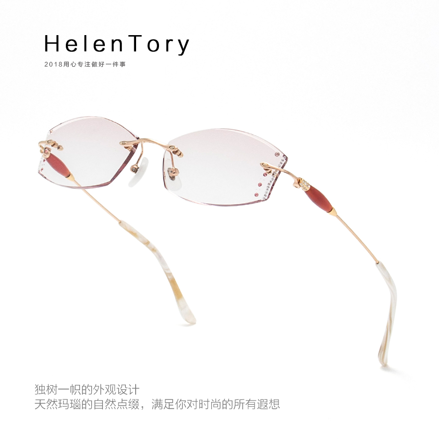 魅影时尚玛瑙纯钛无框切边近视眼镜女 可定制老花渐进片AM6206