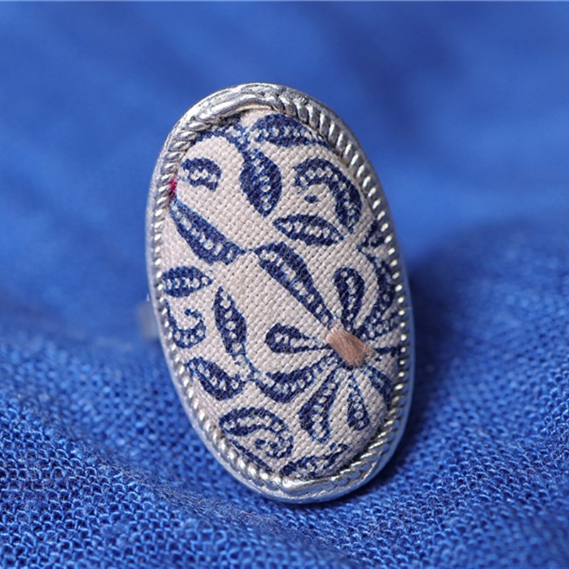 【蓝染】民族风手工苗q银蜡染戒指小清新可调节植物染蓝色指环饰