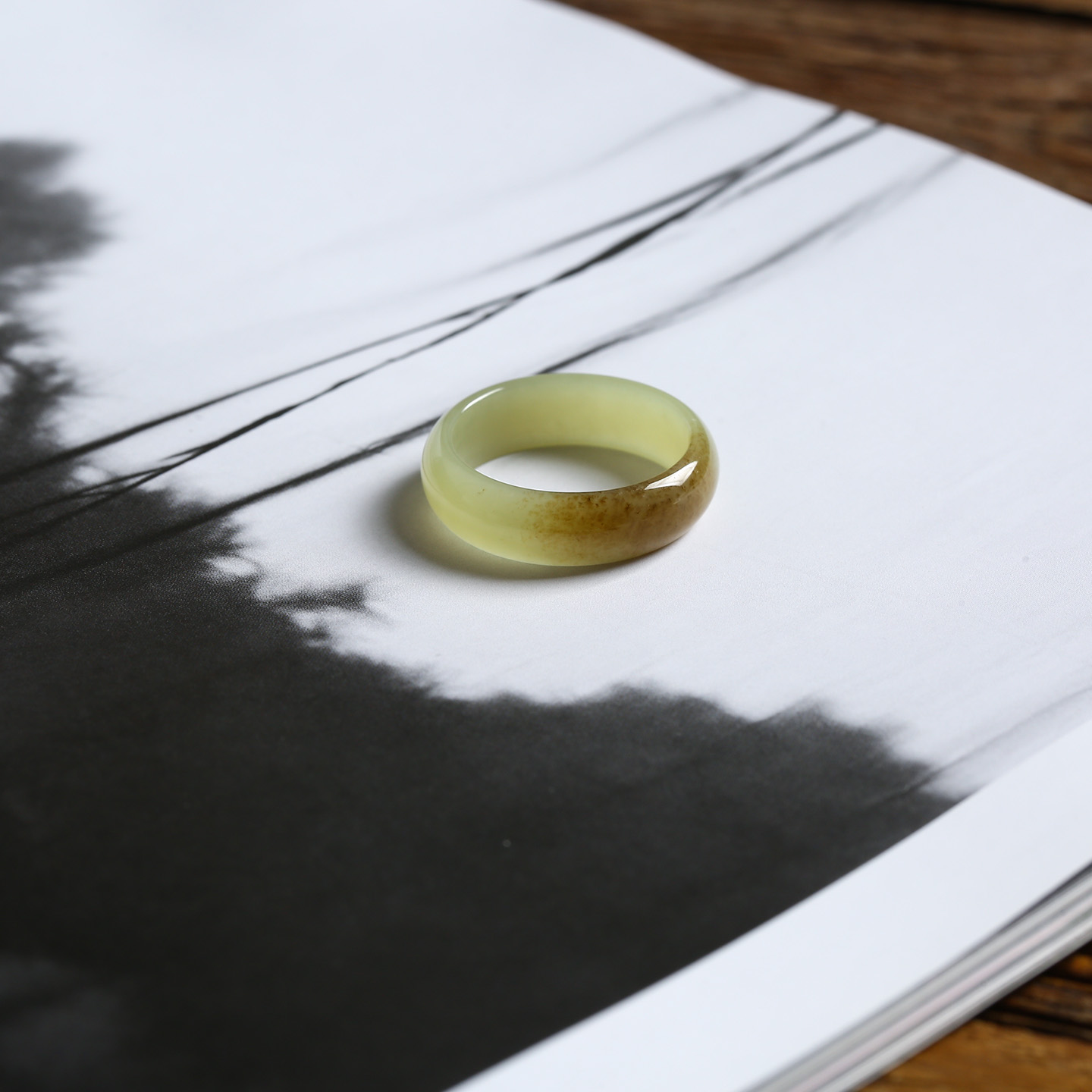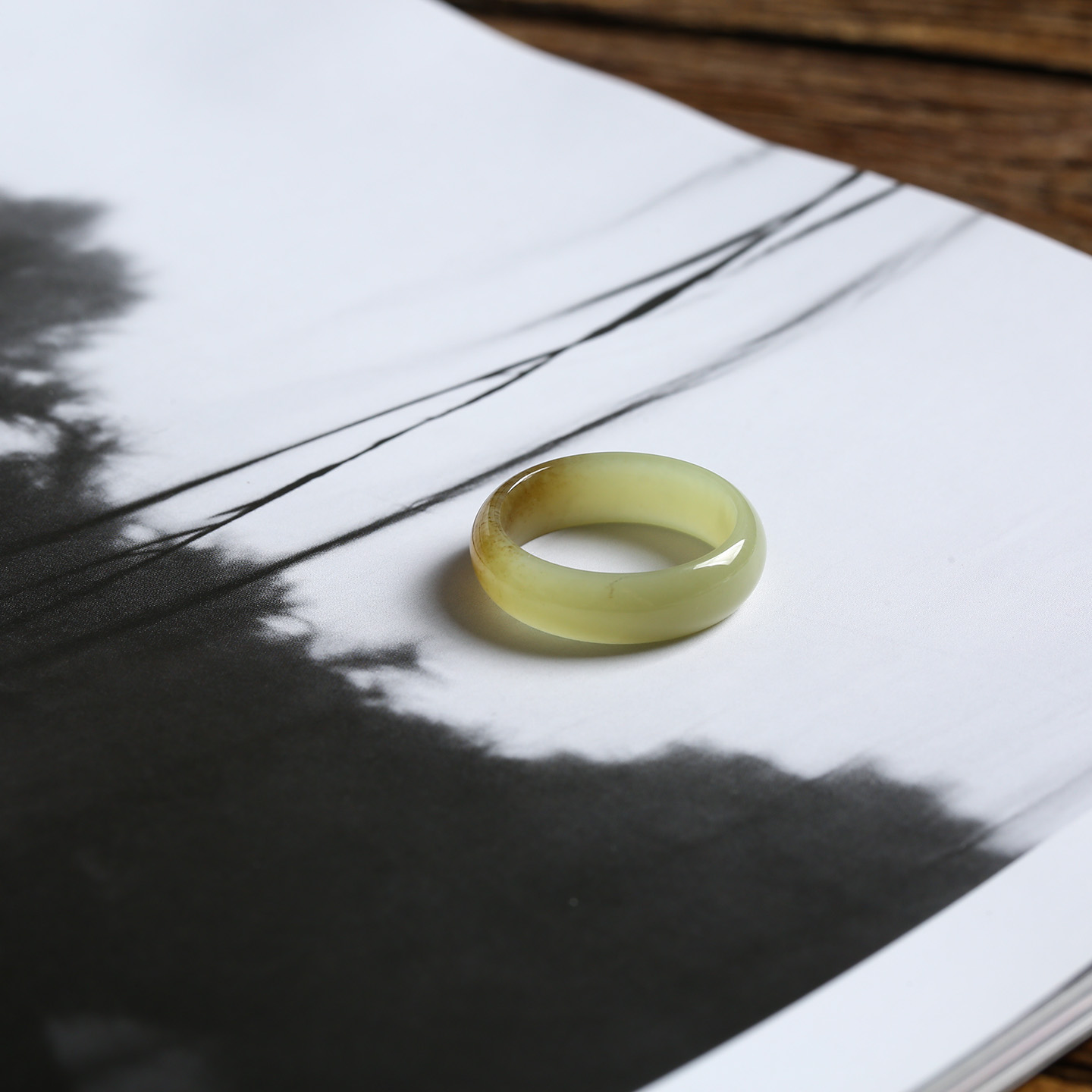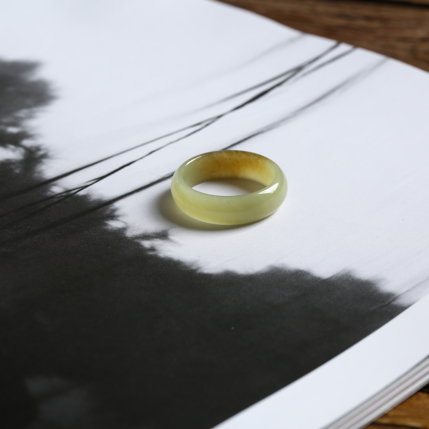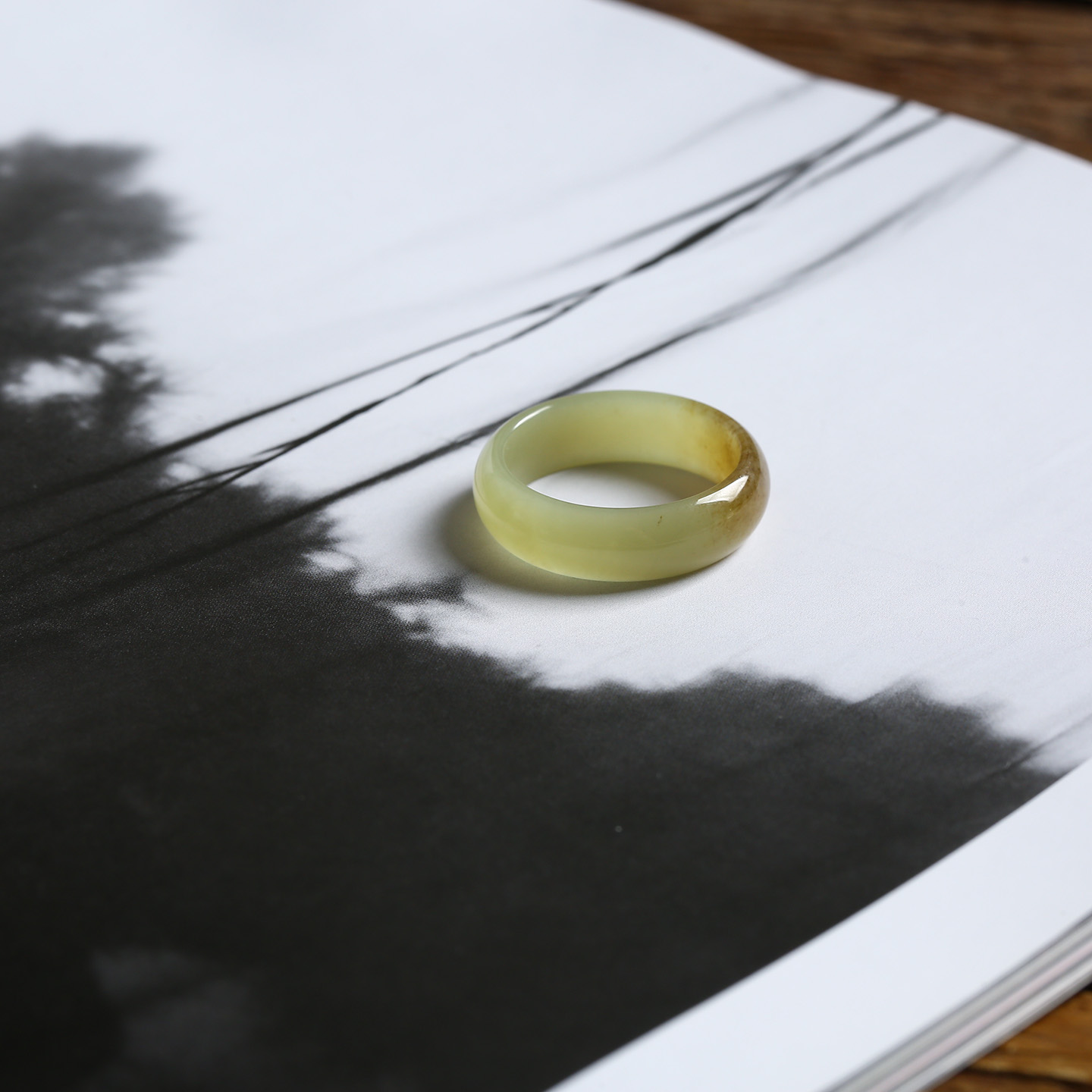 21号戒指 新疆和田玉糖料糖黄玉泥鳅背圆弧素圈指环 330
