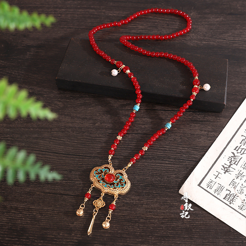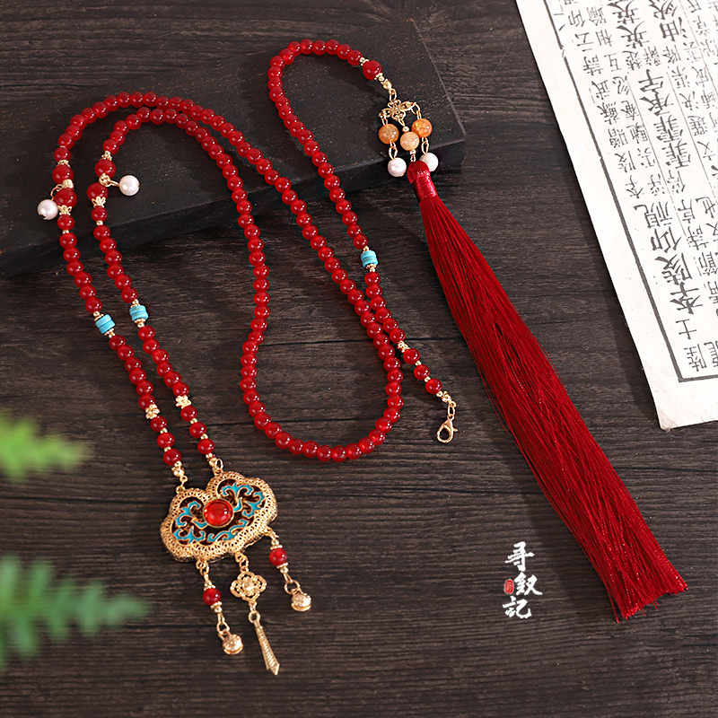 马面裙配饰晚明风红色背云长流苏旗袍结婚古风项链软璎珞订婚饰品