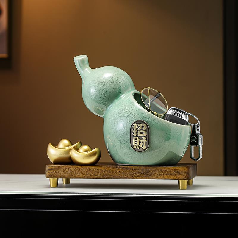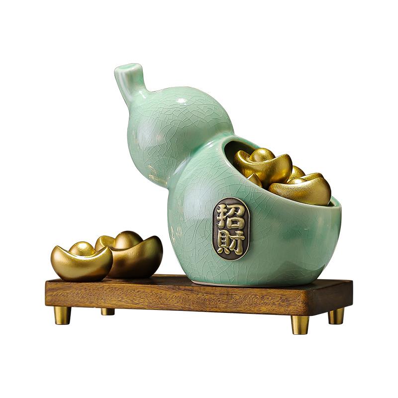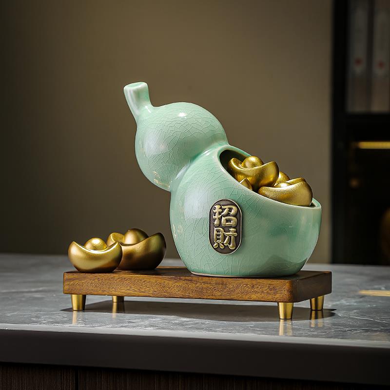新中式元宝聚宝盆葫芦摆件办公室酒柜客厅招财前台装饰品开业礼物