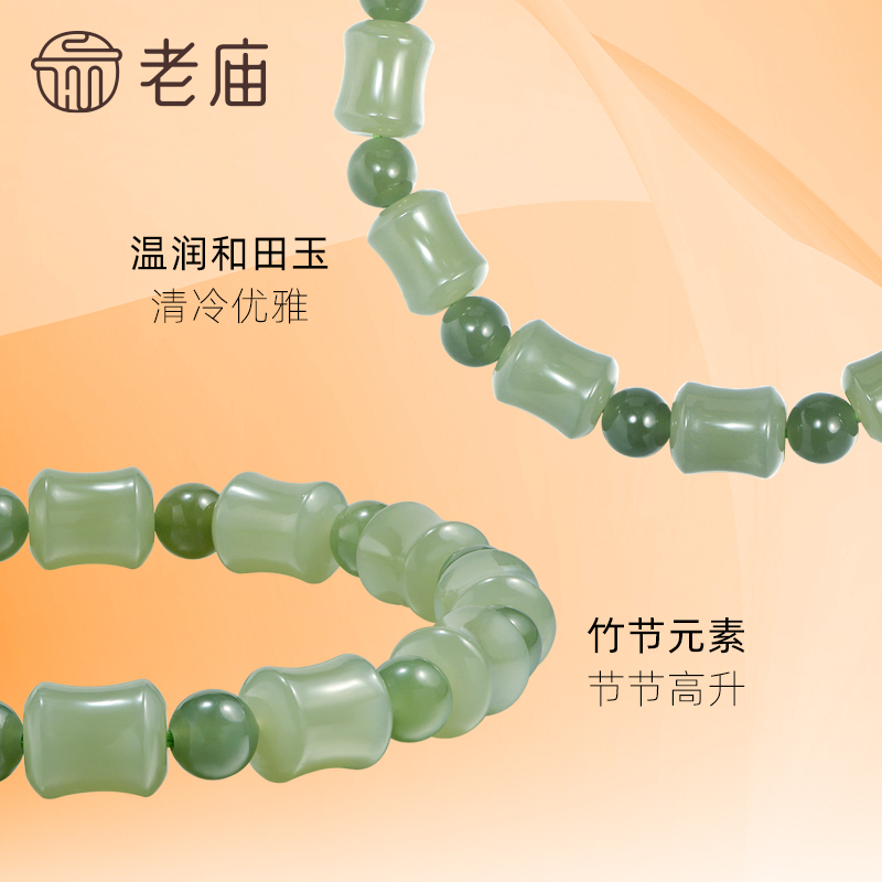 老庙黄金和田玉竹节手串节节高升事业顺遂温润玉石气质送礼