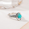 悦宝珠宝绿松石中式银饰S925纯银元宝唐草纹国风戒指工厂直销
