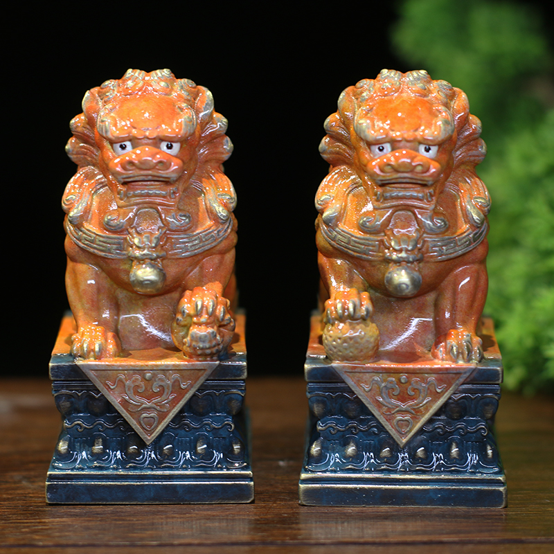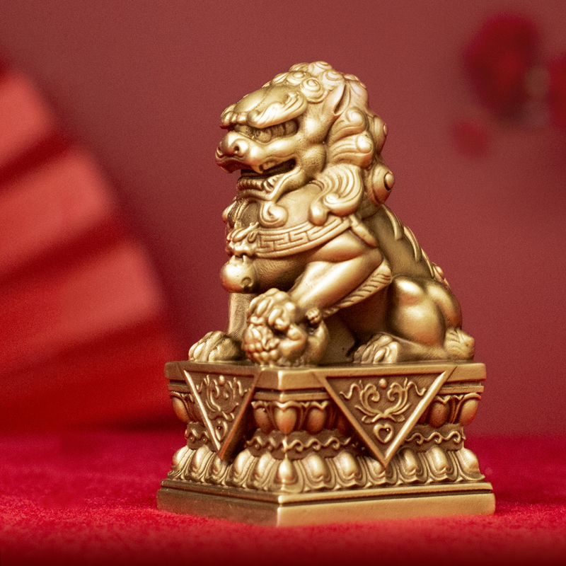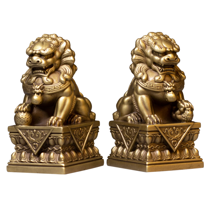 铜臻全铜狮子摆件一对雌雄国风精致装饰桌面故宫狮中式瑞兽镇宅
