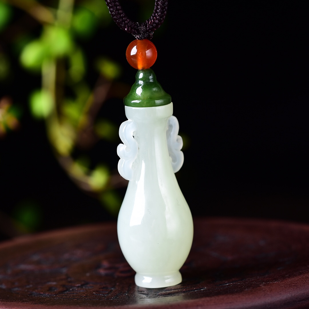 新疆和田玉羊脂玉白玉青白玉双耳平安花瓶吊坠男女款挂件玉坠玉佩