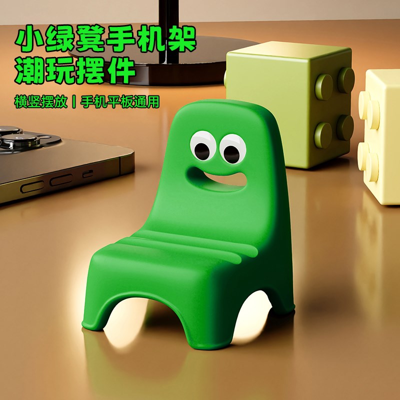 MA卡通小绿凳手机平q板支架创意装饰品办公室桌面摆件送女生礼物