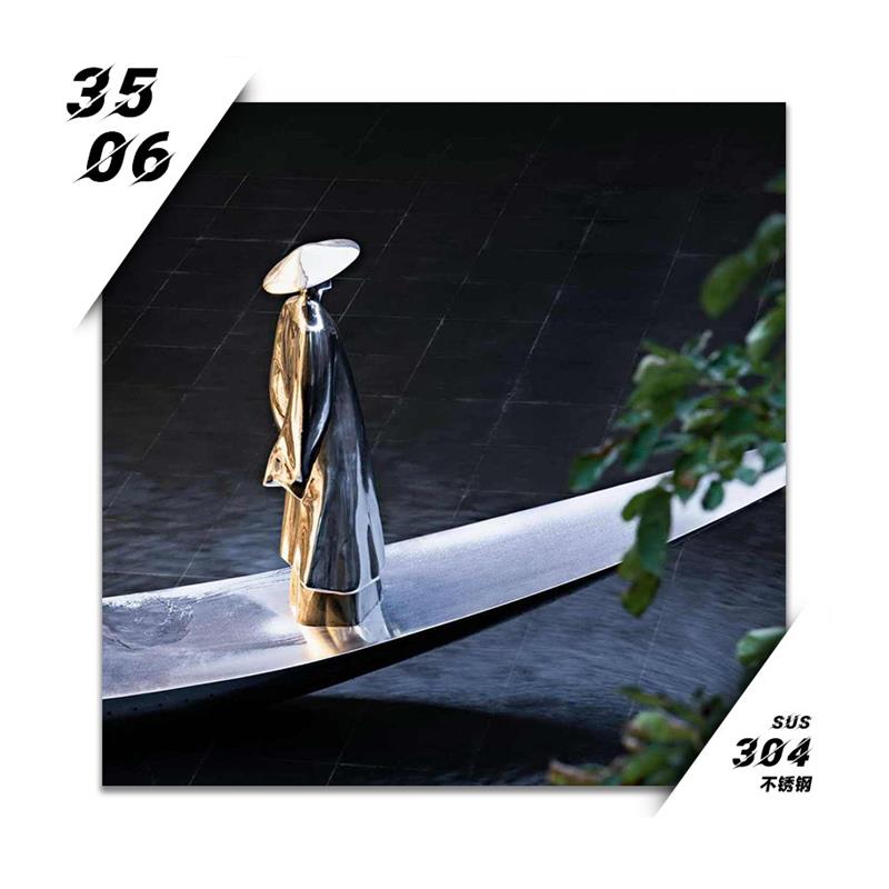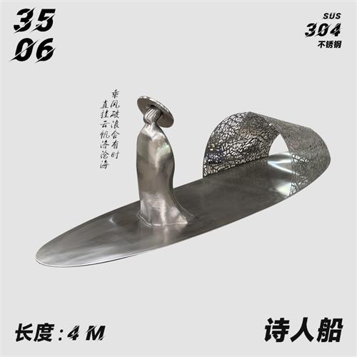 不锈钢镂空帆船抽象人物水景仿真诗人乘船售楼部景观大型定制雕塑