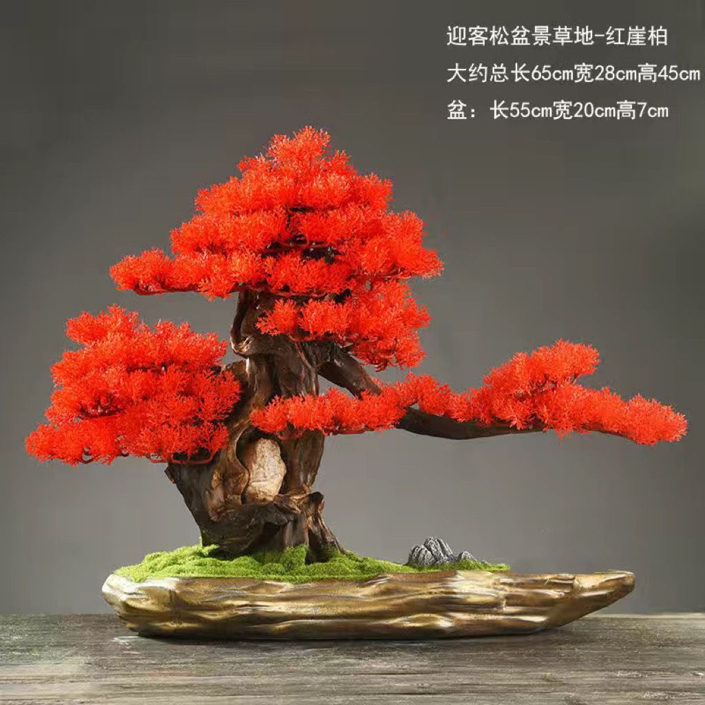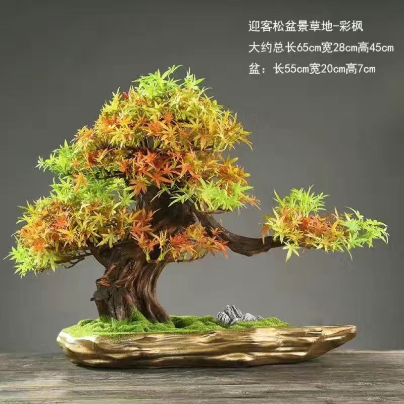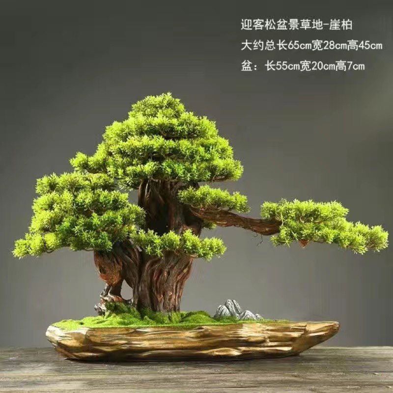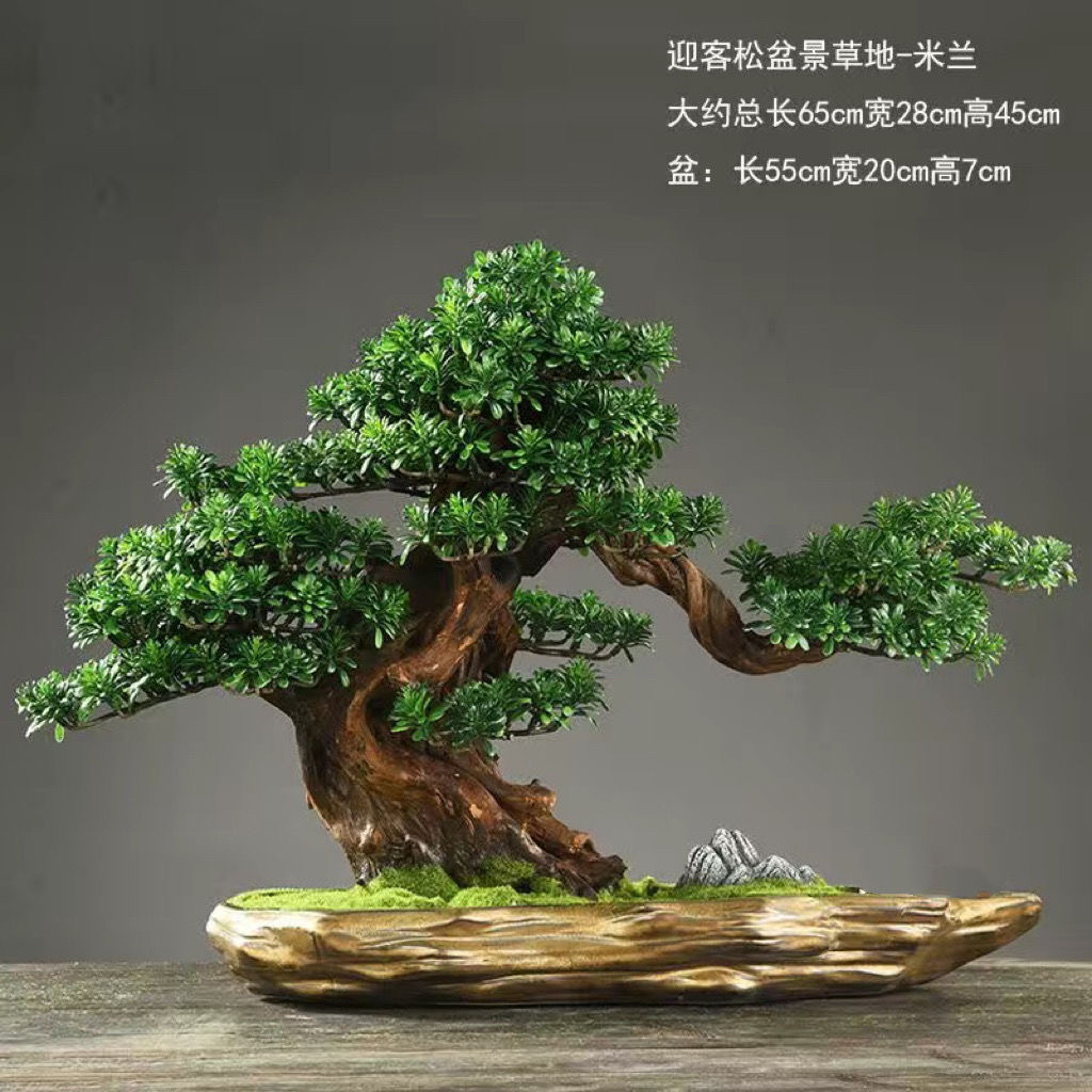 仿真迎客松绿植盆景入户玄关中式客厅酒店办公室桌面假树装饰摆件