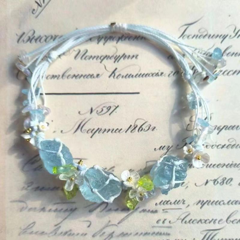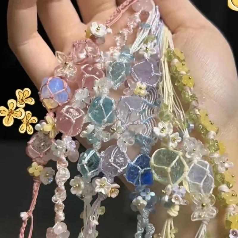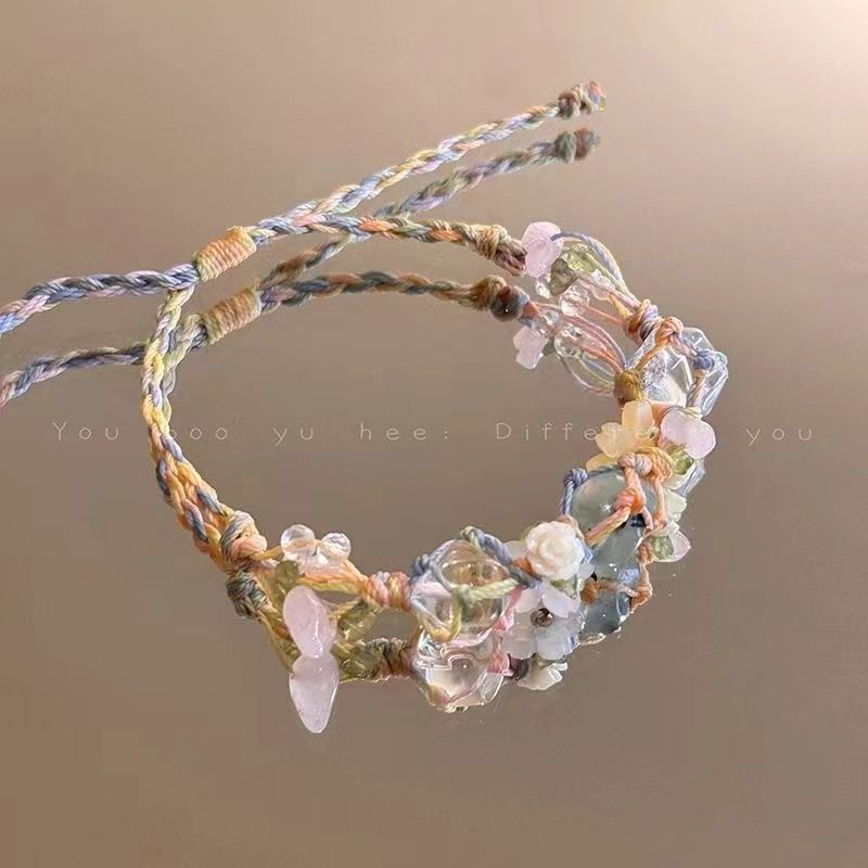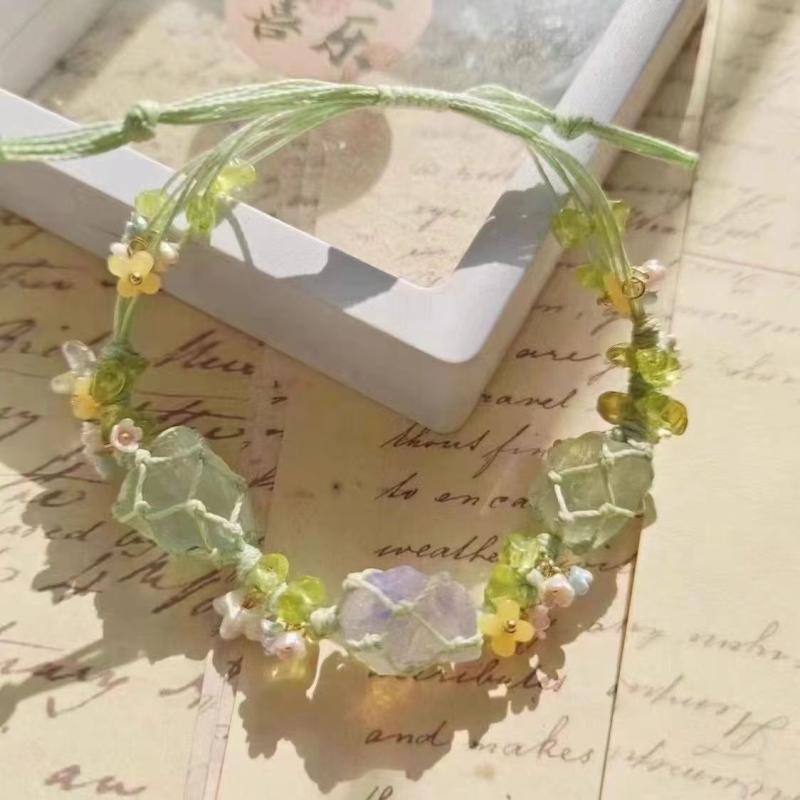 彩色水晶手链纯手工编织网兜手绳女闺蜜礼物小众高级感串珠花朵