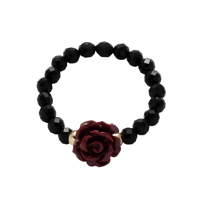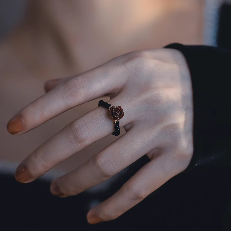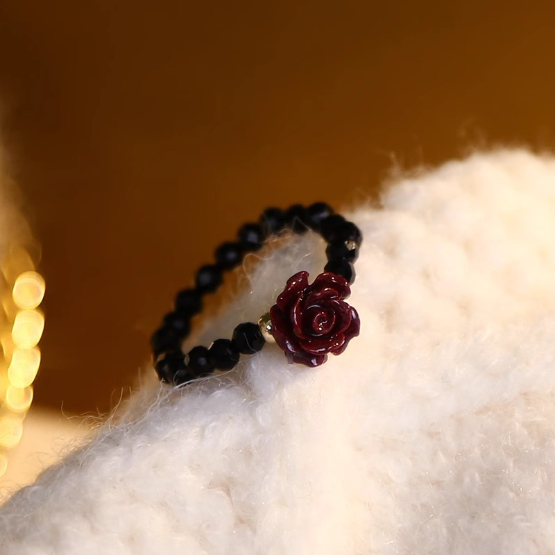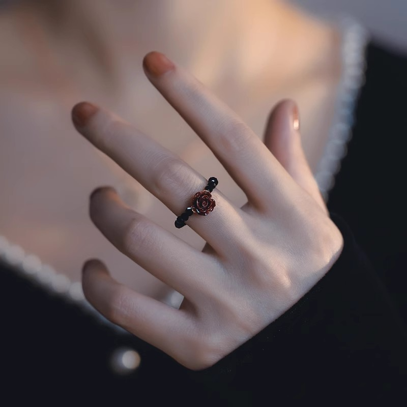 2025新款复古玫瑰串珠戒指女款甜酷个性时尚小众配饰设计感食指戒