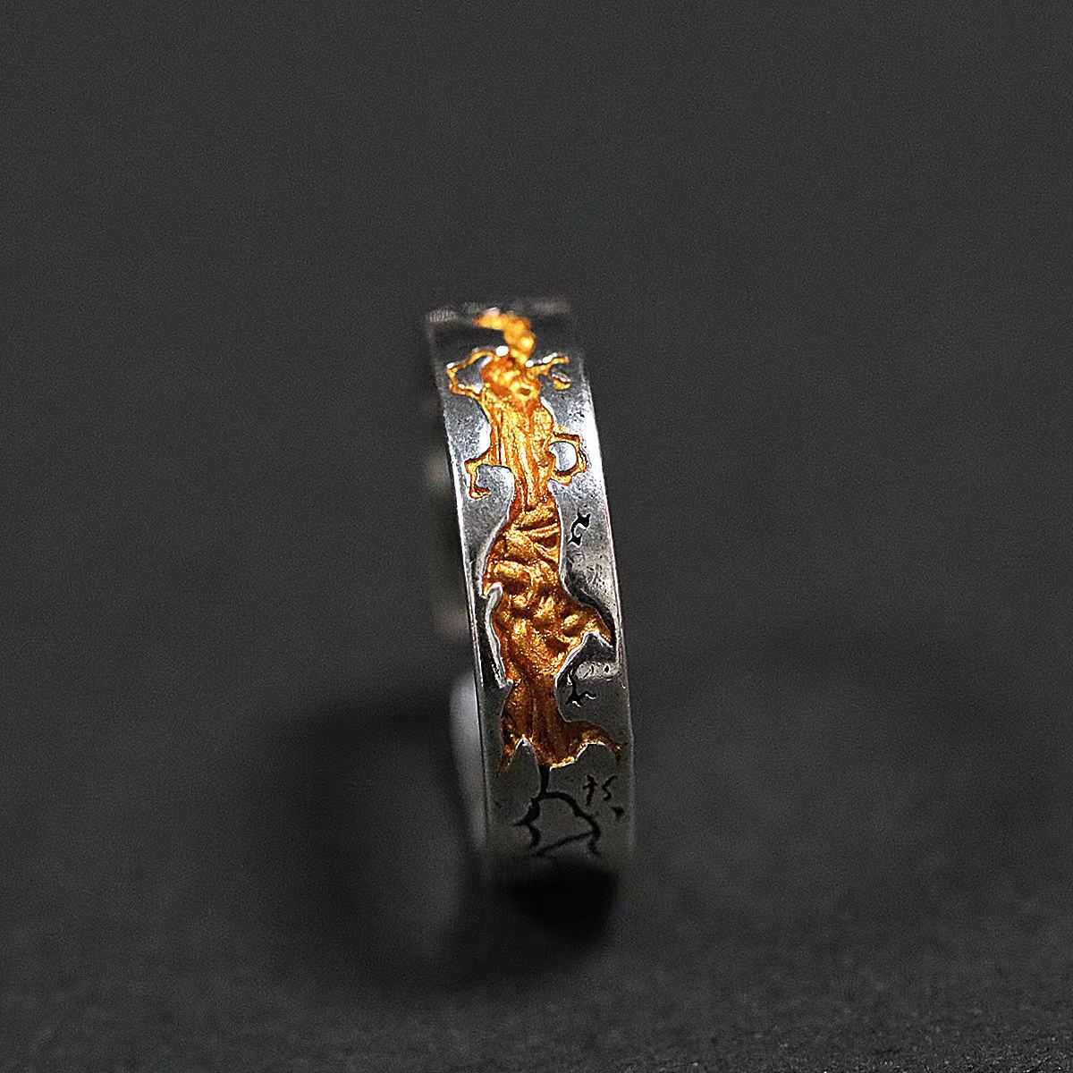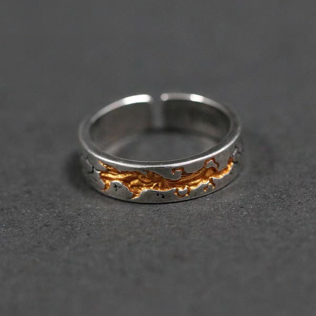 DAMAI 原创设计《渐变》戒指男泰银食指黄金手工制作黑色银包金戒