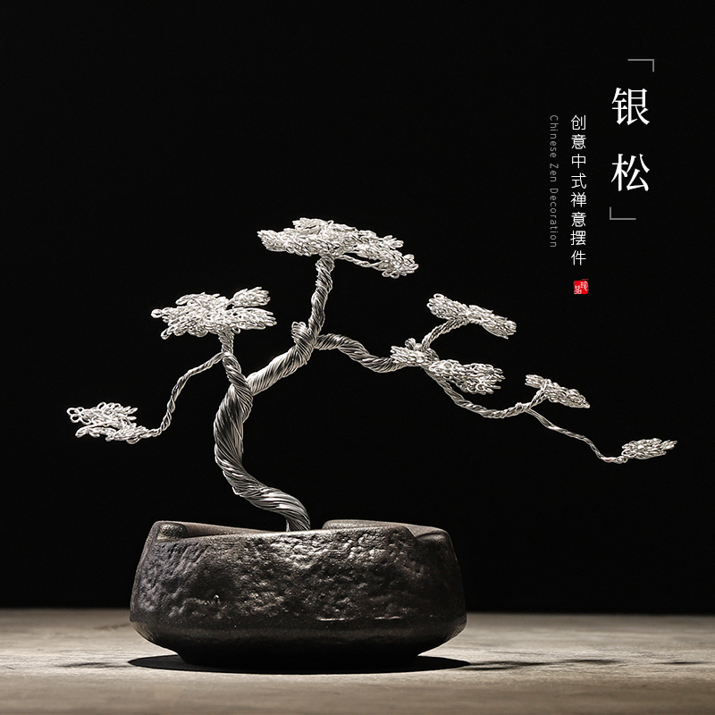 创意家居软装饰品迎客松摆件客厅壁饰玄关办公室陶瓷工艺品仿真花
