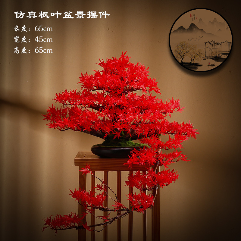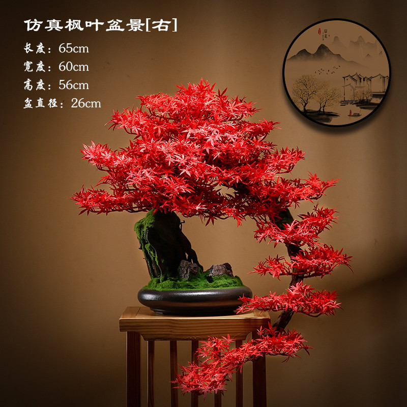 新中式客厅摆件迎客松盆景仿真电视柜桌面玄关装饰软装绿植假盆栽