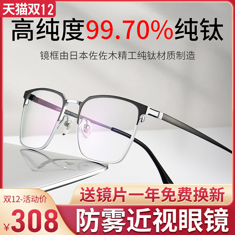 日本进口纯钛眼镜男防蓝光网上配眼睛镜框有度数加散光变色近视镜