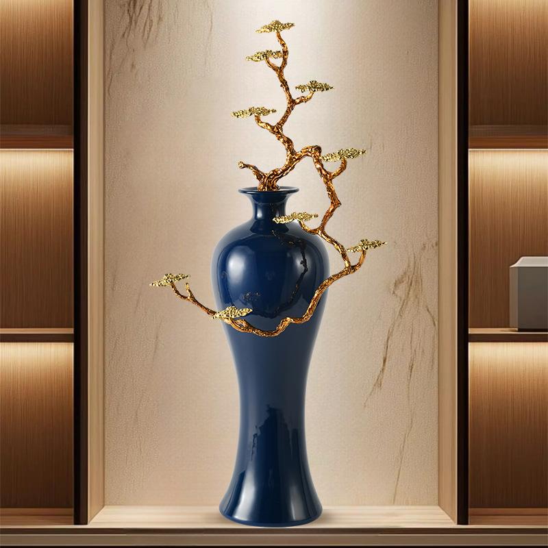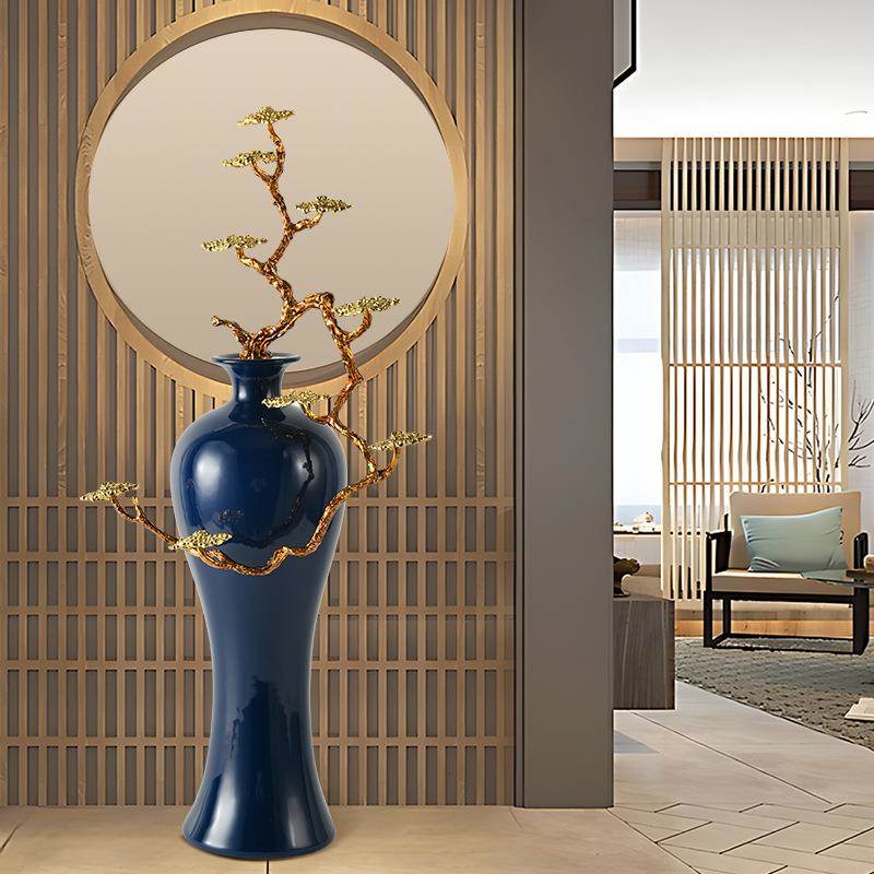 新中式迎客松陶瓷花瓶摆件入户玄关电视柜客厅书房创意国风装饰品