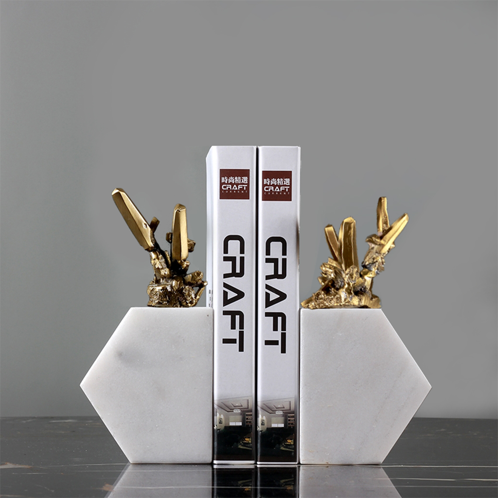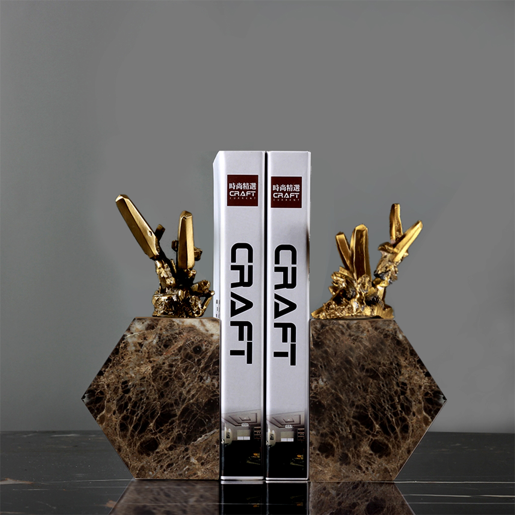 现代轻奢天然玛瑙大理石书挡摆件样板间售楼处书房桌面装饰品