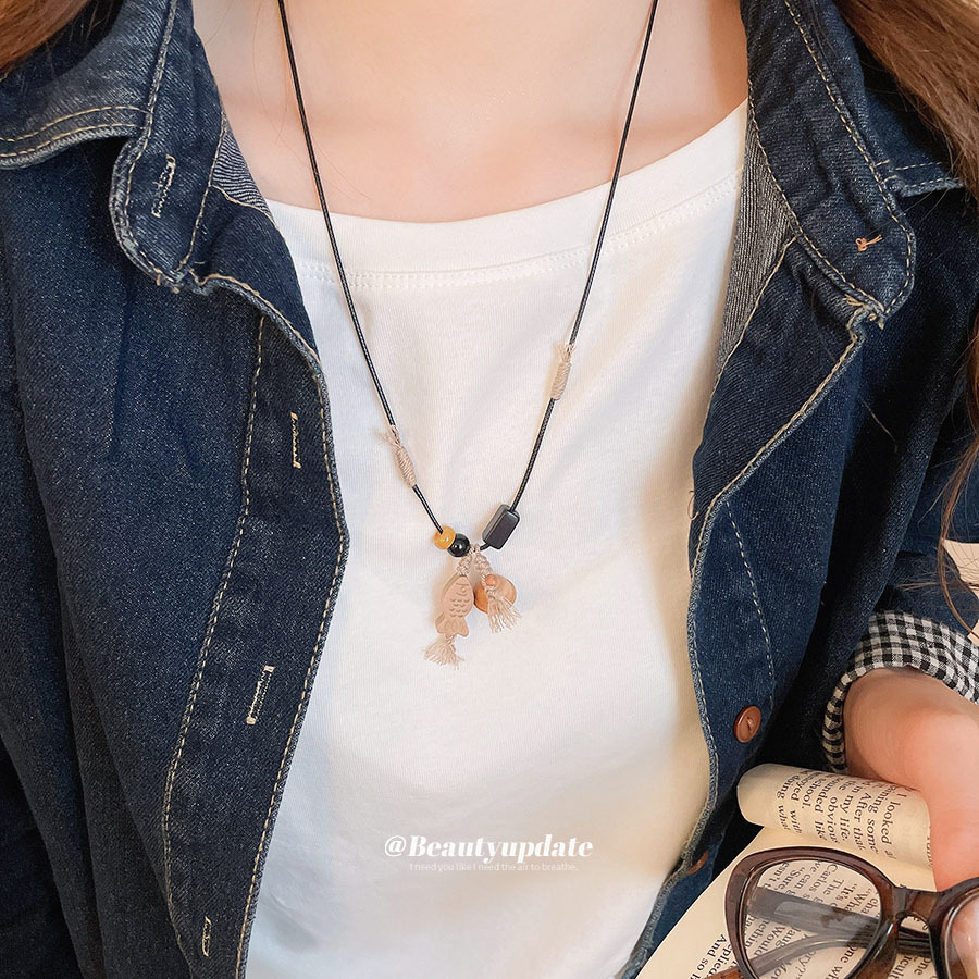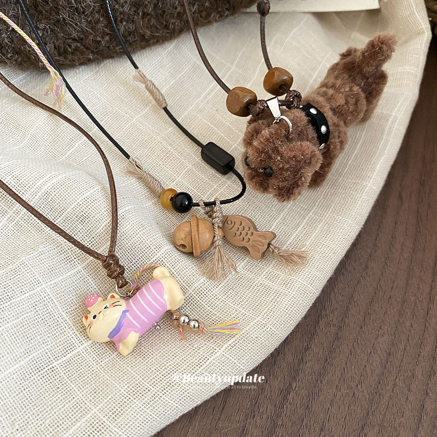 皮革毛绒串珠小狗小猫吊坠项链卡通可爱气质锁骨链小众设计感颈链