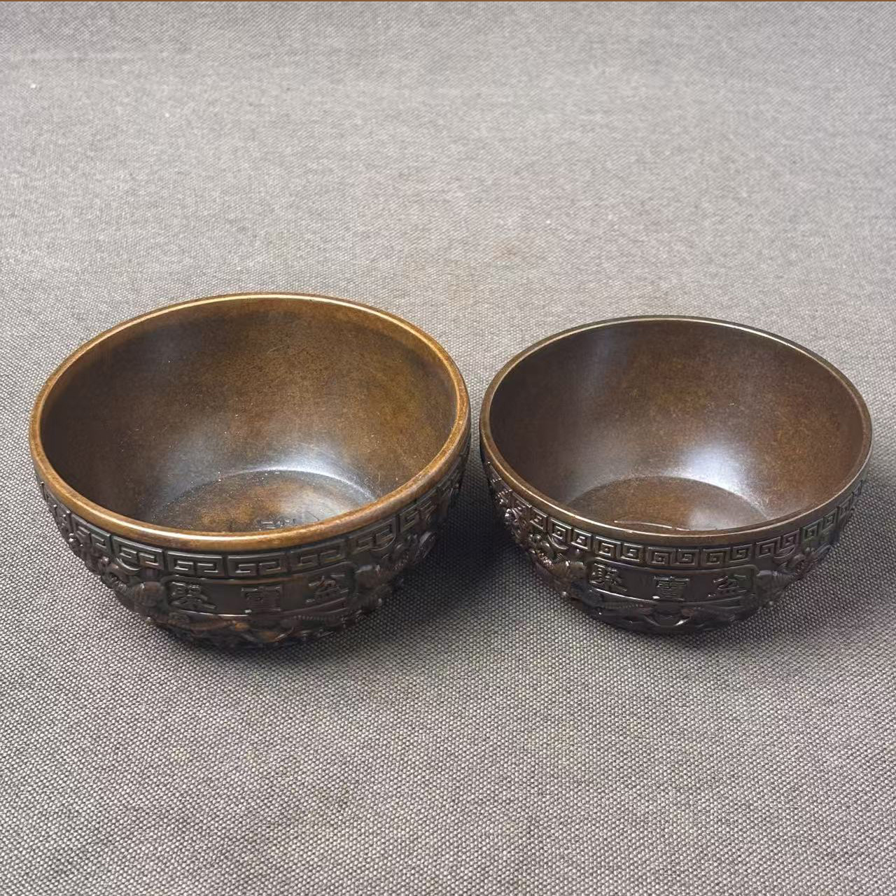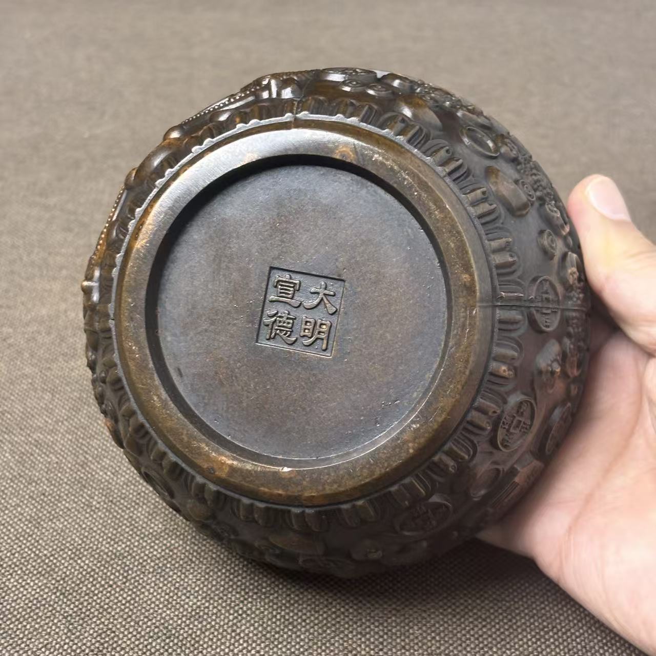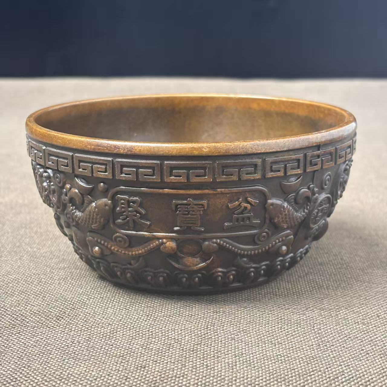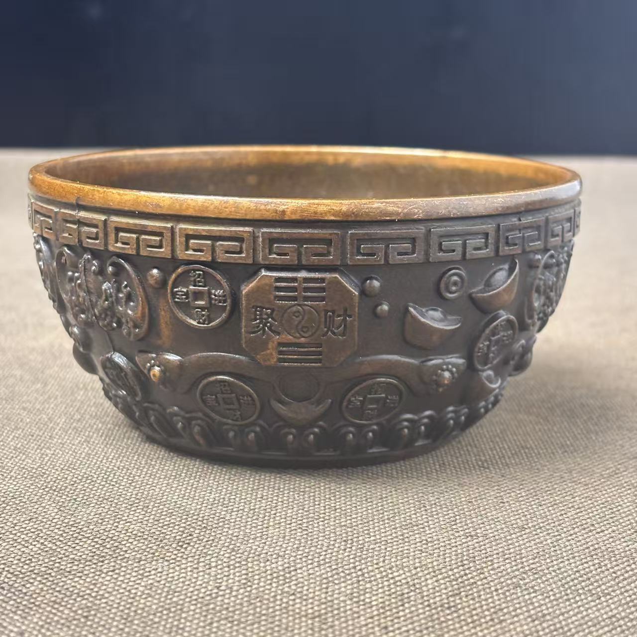 古董文玩纯铜招财聚宝盆桌面铜碗笔洗烟缸摆件供奉碗复古摆设