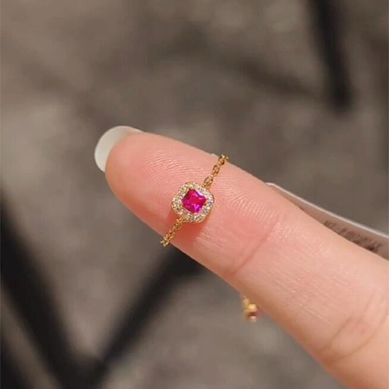 粉色方糖戒指女抽拉式链条可调节小众设计感甜美精致高级感食指戒