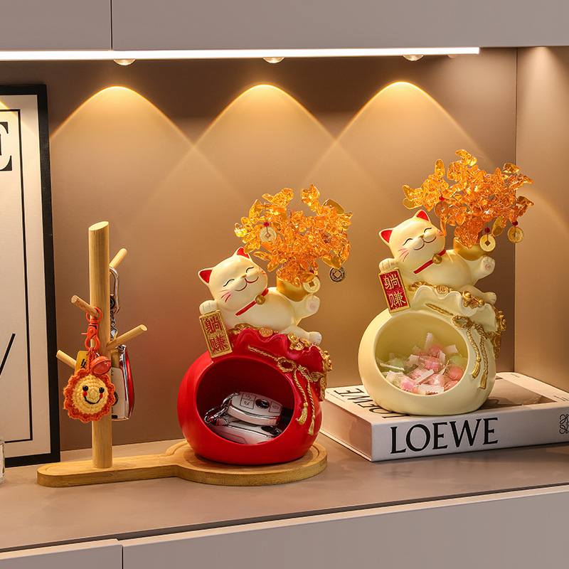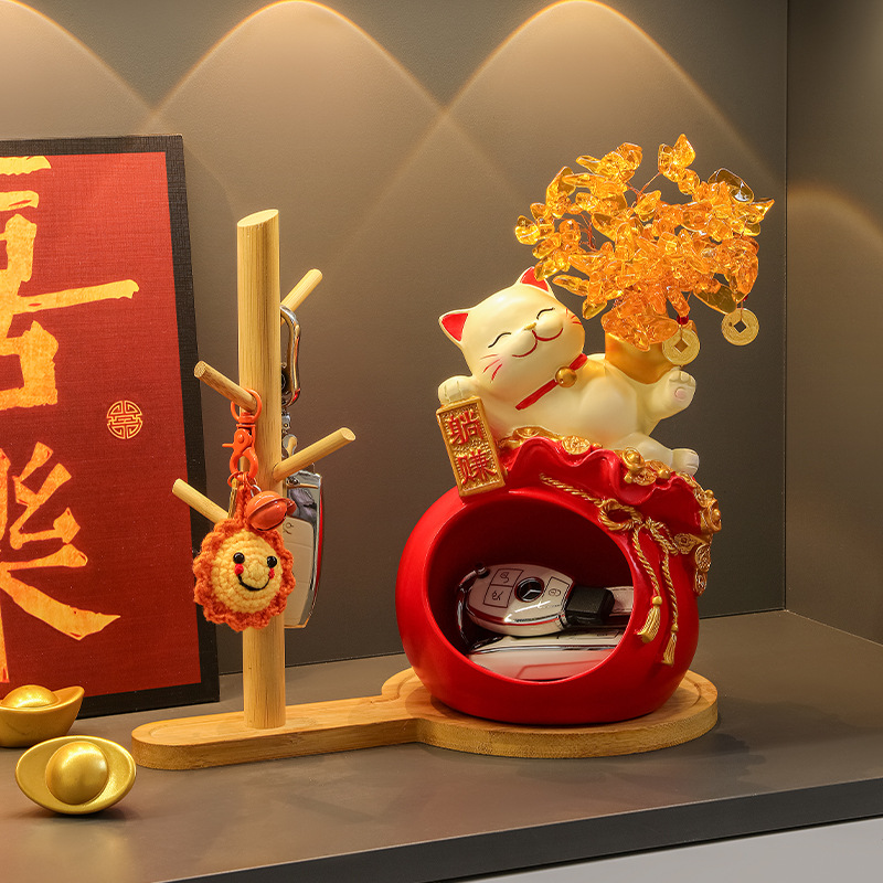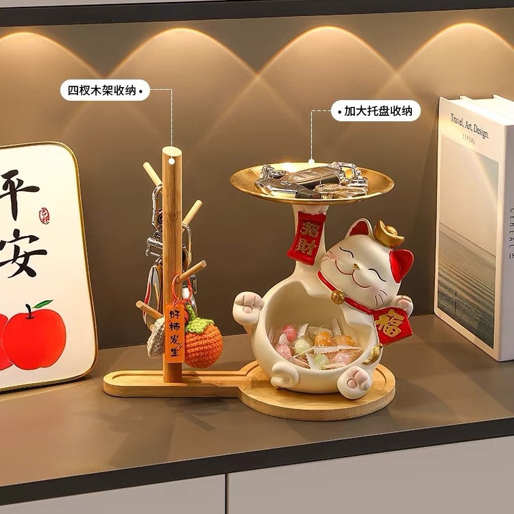 玄关钥匙收纳可爱熊猫摆件托盘家居饰品树脂摆件桌面装饰