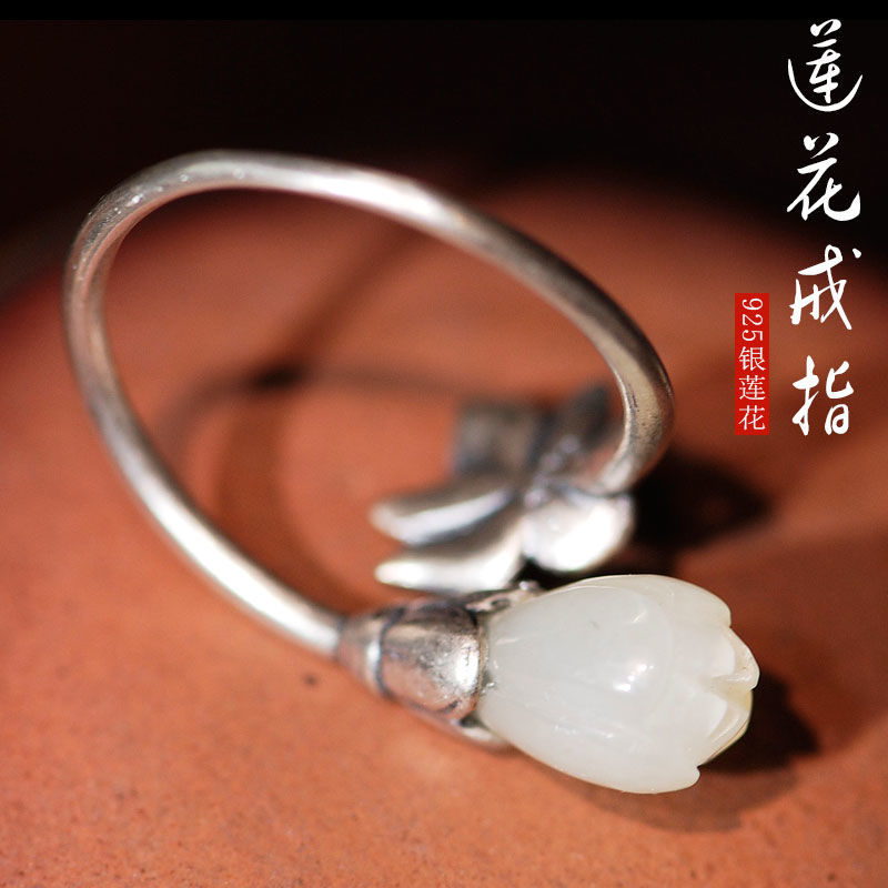 镀925银复古故宫上新玉兰花莲花戒指个性雕花开口尾戒女士指环戒