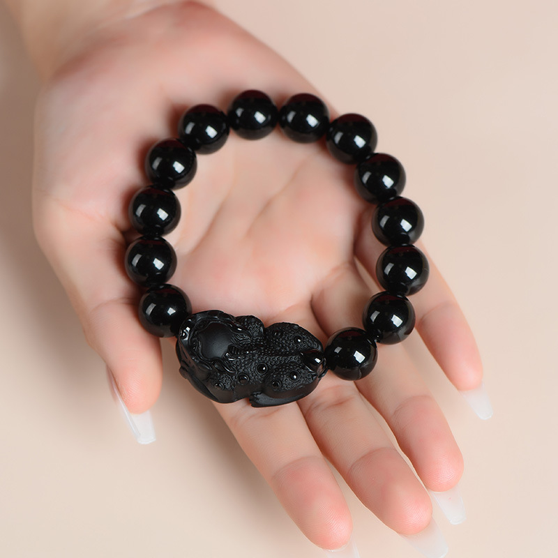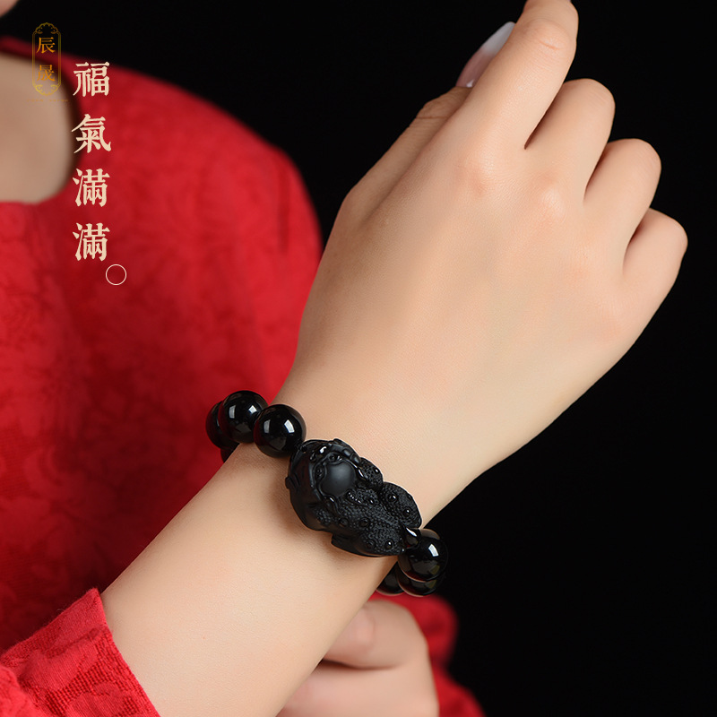 精雕大气乌金黑曜石貔貅手链男士款手链饰品礼物