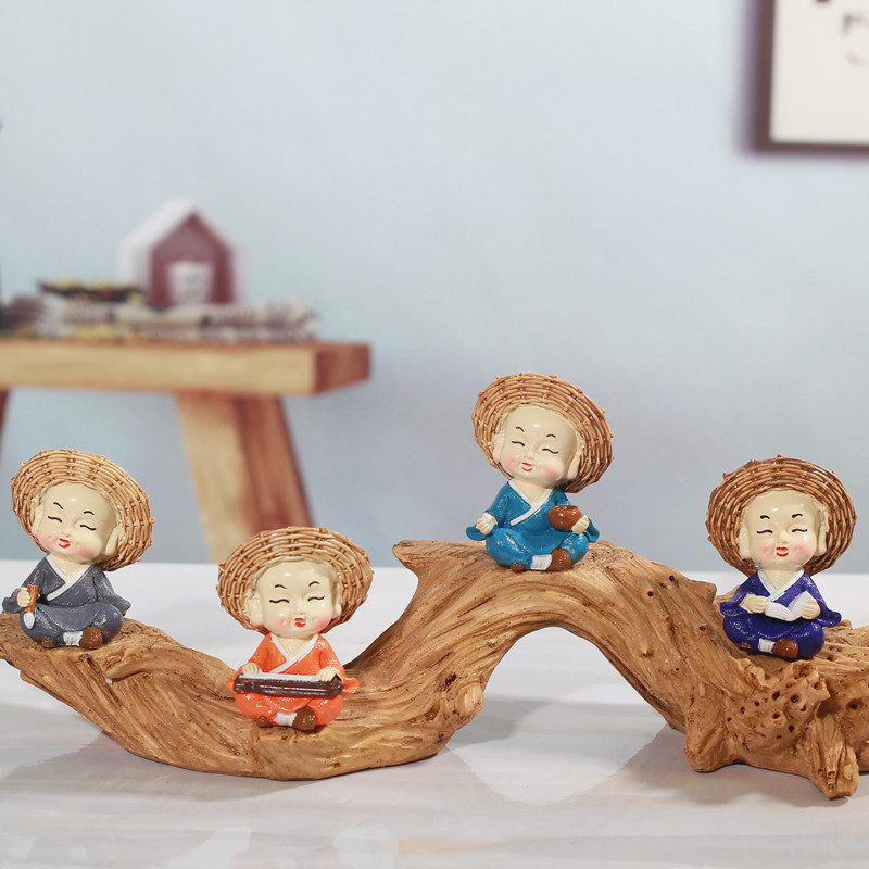 创意五福财神爷招财家居客厅酒柜新中式摆件办公室开业乔迁礼品