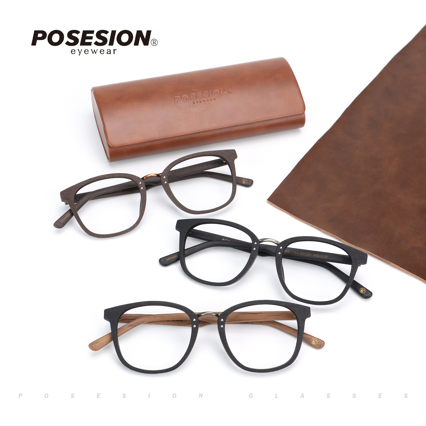 POSESION全框木质眼镜框 复古大框眼镜架 近视黑框黑色中金男潮女