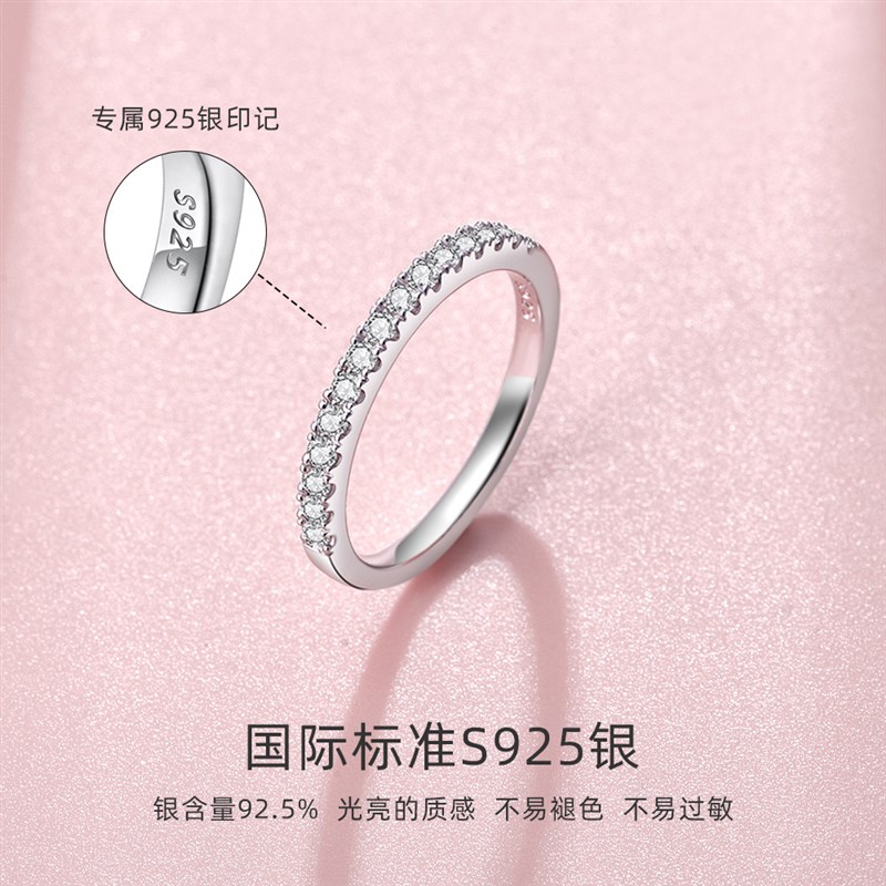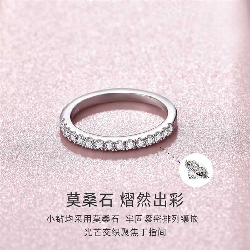 莫桑石戒指女排钻纯银轻奢高级感小众铂金情侣对戒结婚求婚钻戒